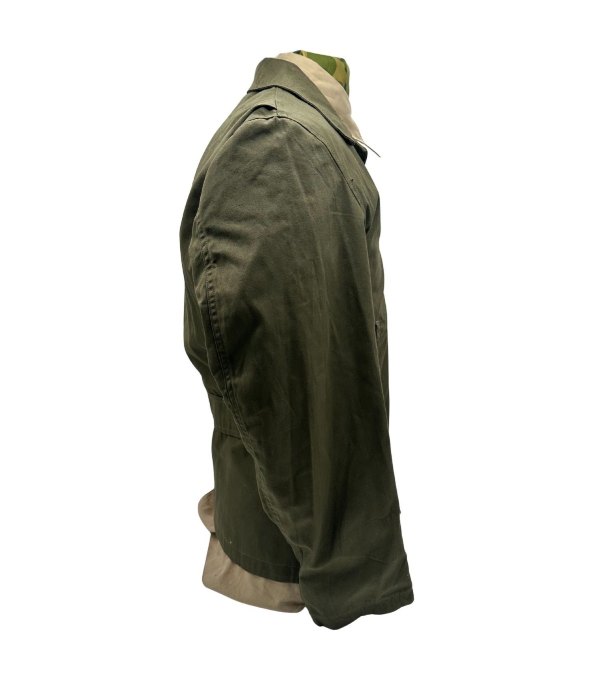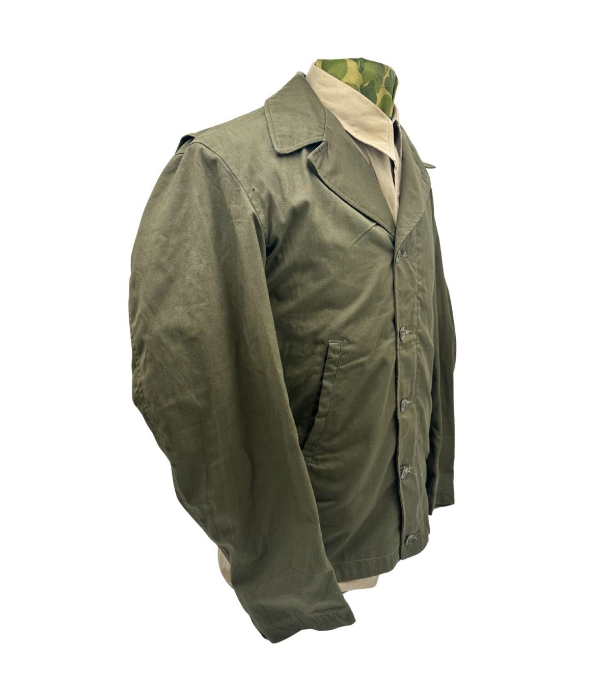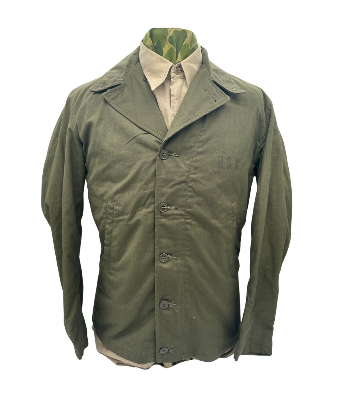 Nous vous proposons une pièce de vêtement de combat d'une qualité muséale : un Blouson N-4 Deck Jacket de l'US Navy (Marine Américaine). Ce blouson fut largement utilisé par le personnel de pont sur les navires et par les Marines (USMC) durant les campagnes du Pacifique et de l'Atlantique. Il est célèbre pour sa robustesse et son design emblématique qui préfigure les modèles N-1 et A-2.