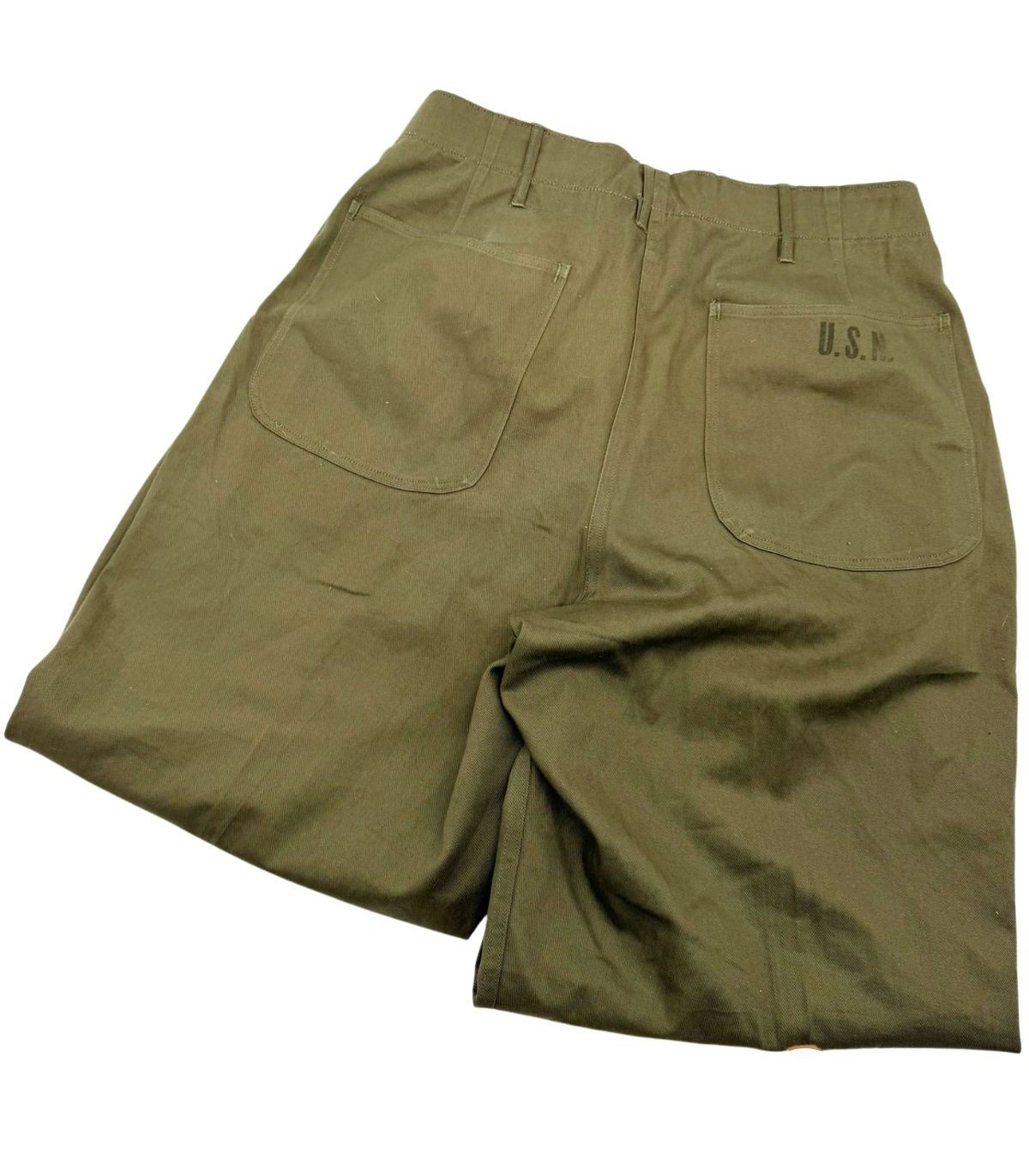 État New Old Stock : jamais porté, toile encore apprêtée, marquage USN net, étiquette intérieure présente.