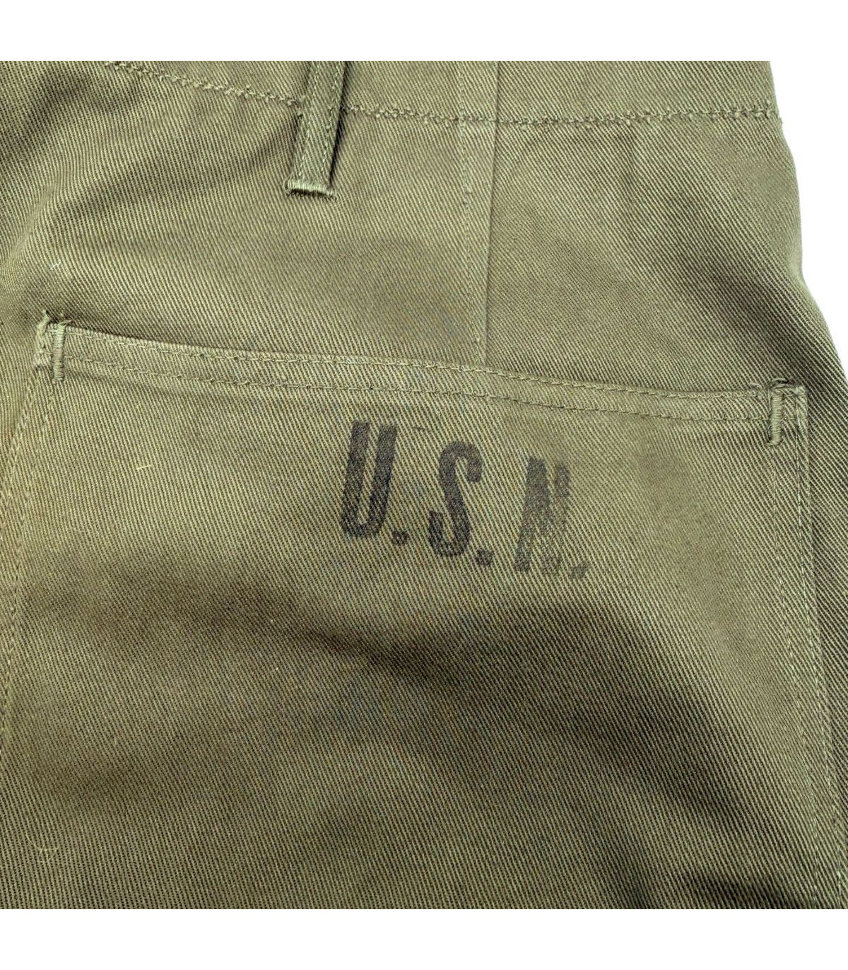 Modèle Trousers, Utility, N-3, coupe droite et haute typique des années 40, grandes poches plaquées.