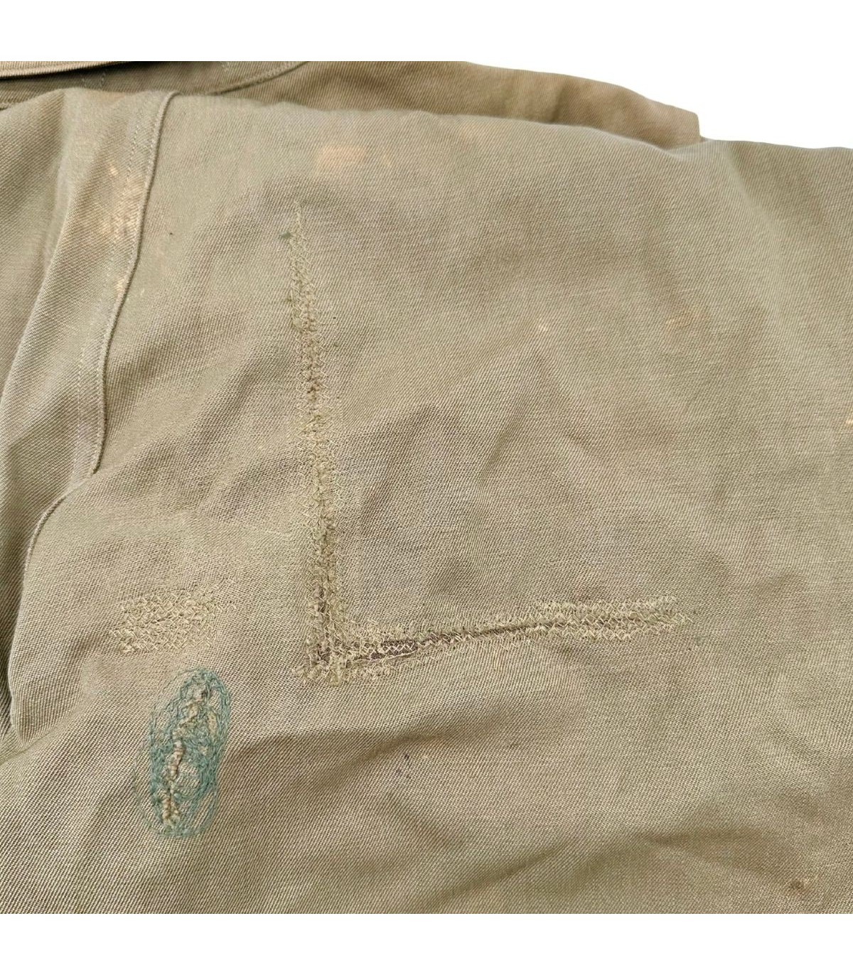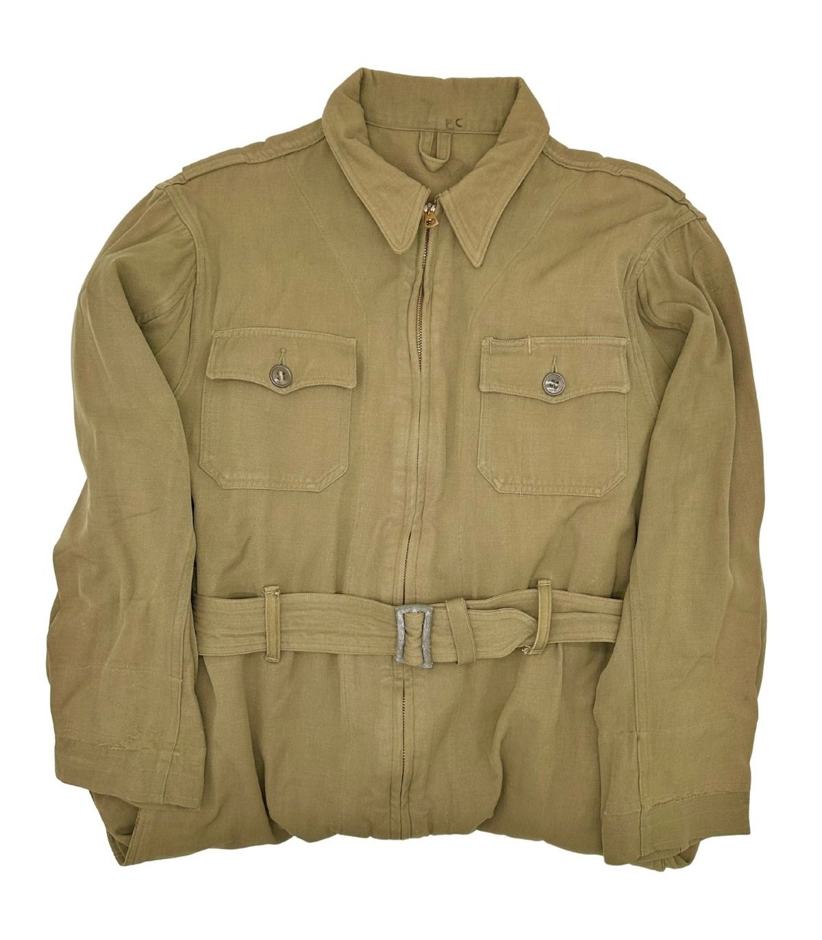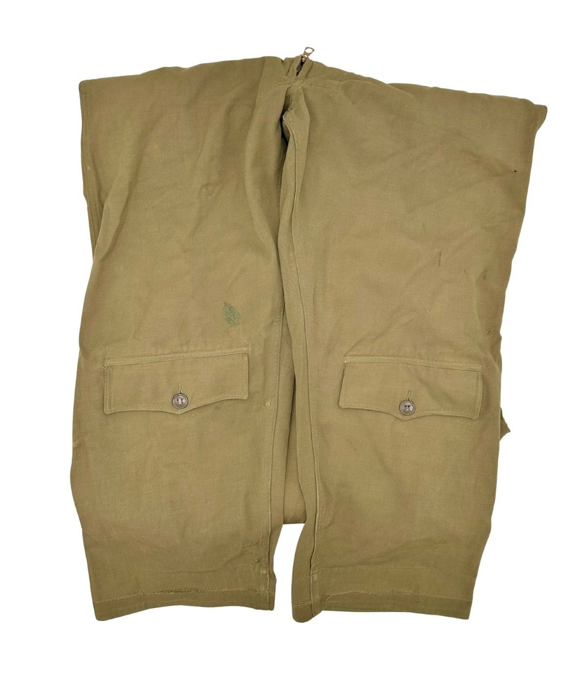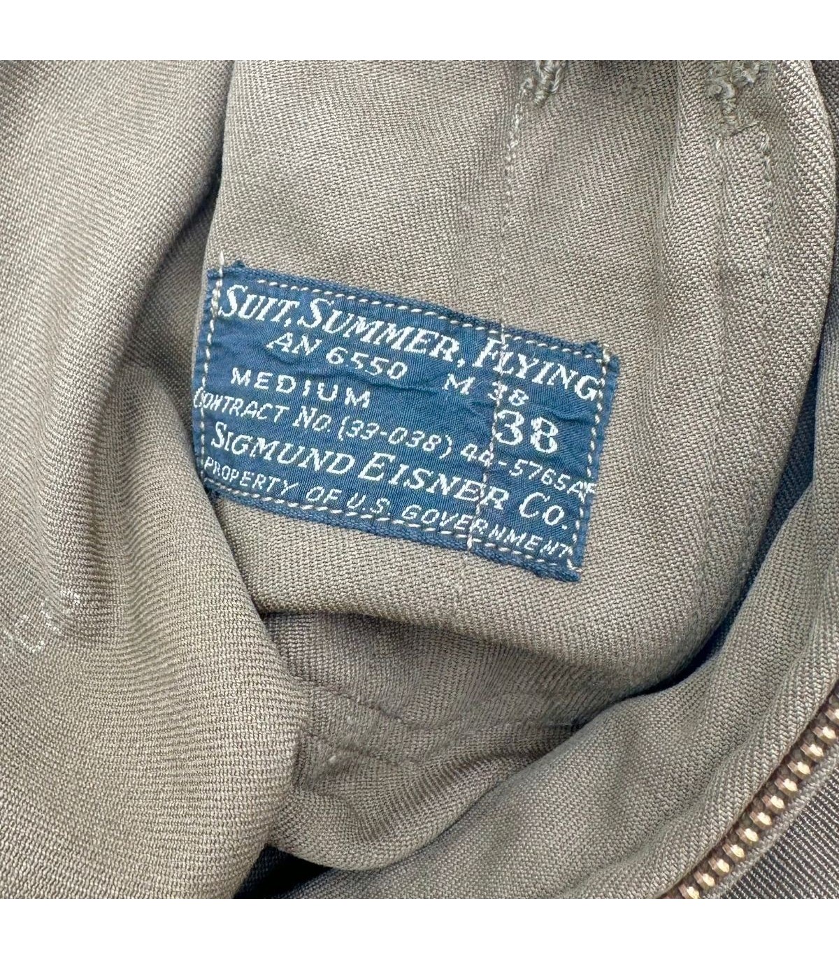 Exemplaire en bon état avec fermeture TALON fonctionnelle. Etiquette présente fabriquée par SIGMUND EISNER Co et datée de 1944. Multiple réparation dépoque dont une sur le postérieur.