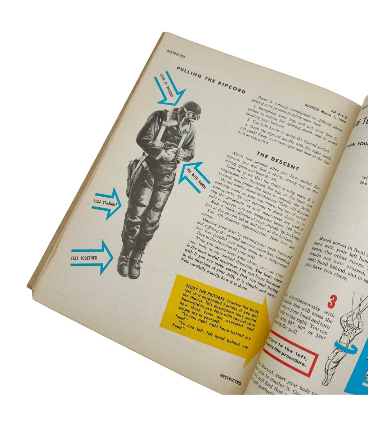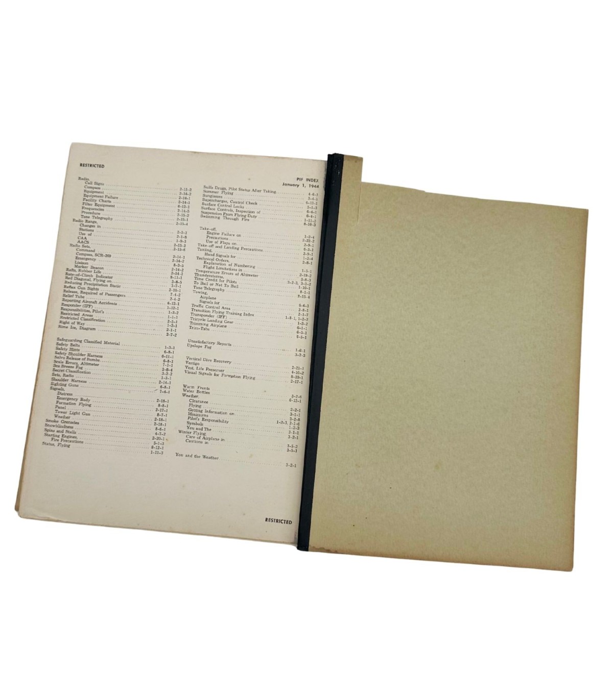 Voici un exemplaire authentique du "Pilots’ Information File" édité pendant la Seconde Guerre mondiale et destiné aux pilotes de l’United States Army Air Forces (USAAF). Ce manuel, marqué “RESTRICTED” (Restreint), constituait une source essentielle d’instructions et de procédures pour les aviateurs américains engagés dans les opérations aériennes entre 1943 et 1945.