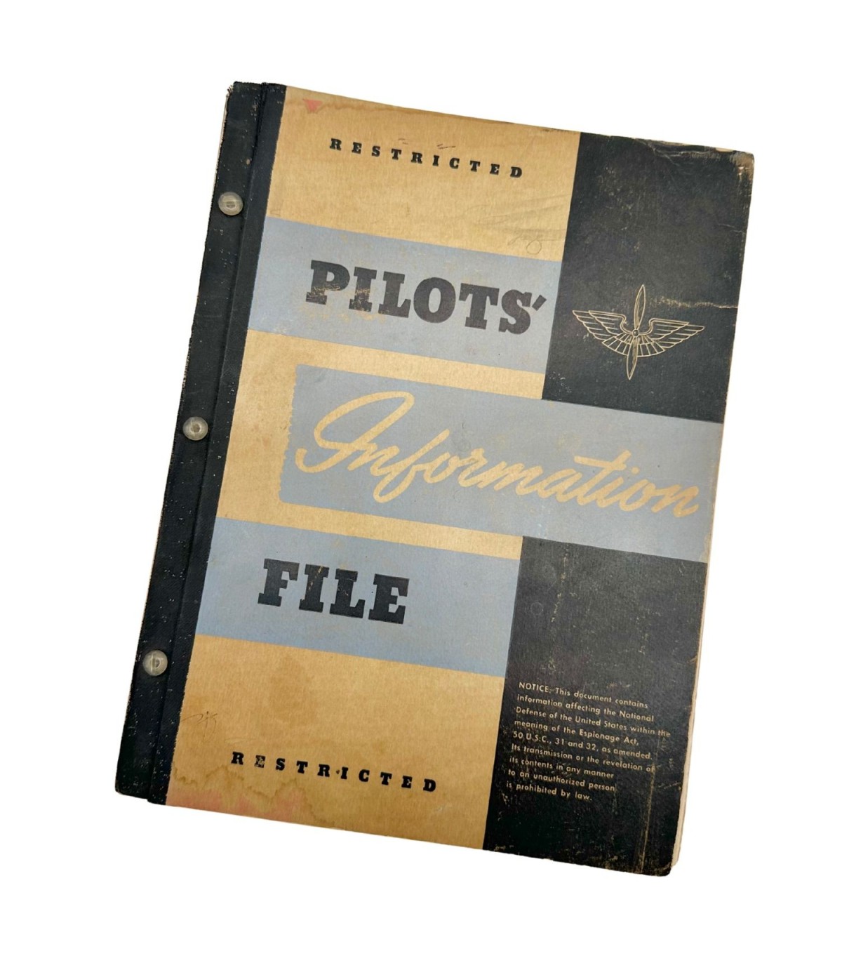 Le “Pilots’ Information File” faisait partie de la documentation confidentielle distribuée aux pilotes américains pendant la Seconde Guerre mondiale. Classé “Restricted”, il ne pouvait être consulté que par le personnel autorisé et contenait des informations critiques sur les tactiques aériennes, la reconnaissance, la survie en vol et les caractéristiques des avions alliés et ennemis.