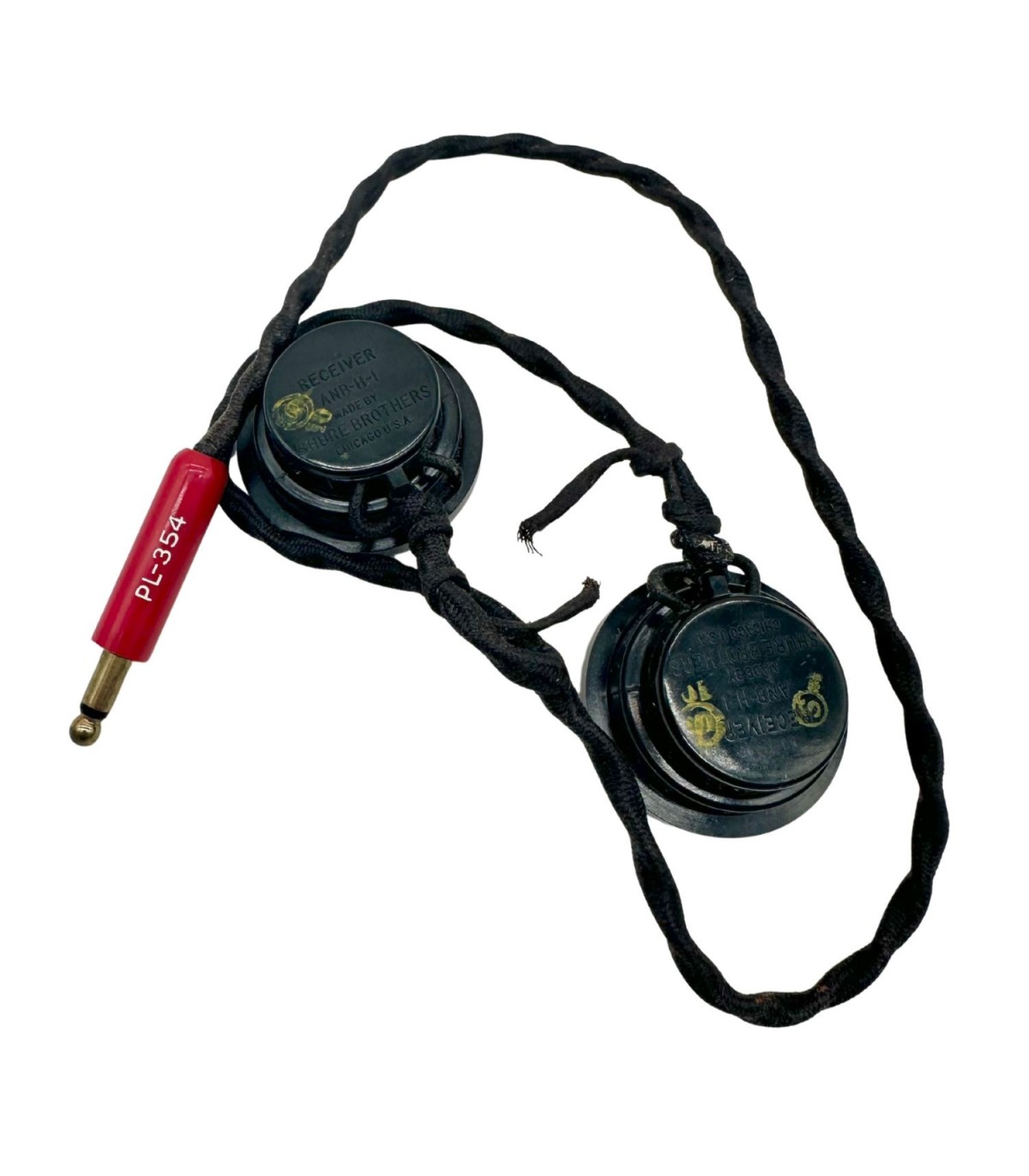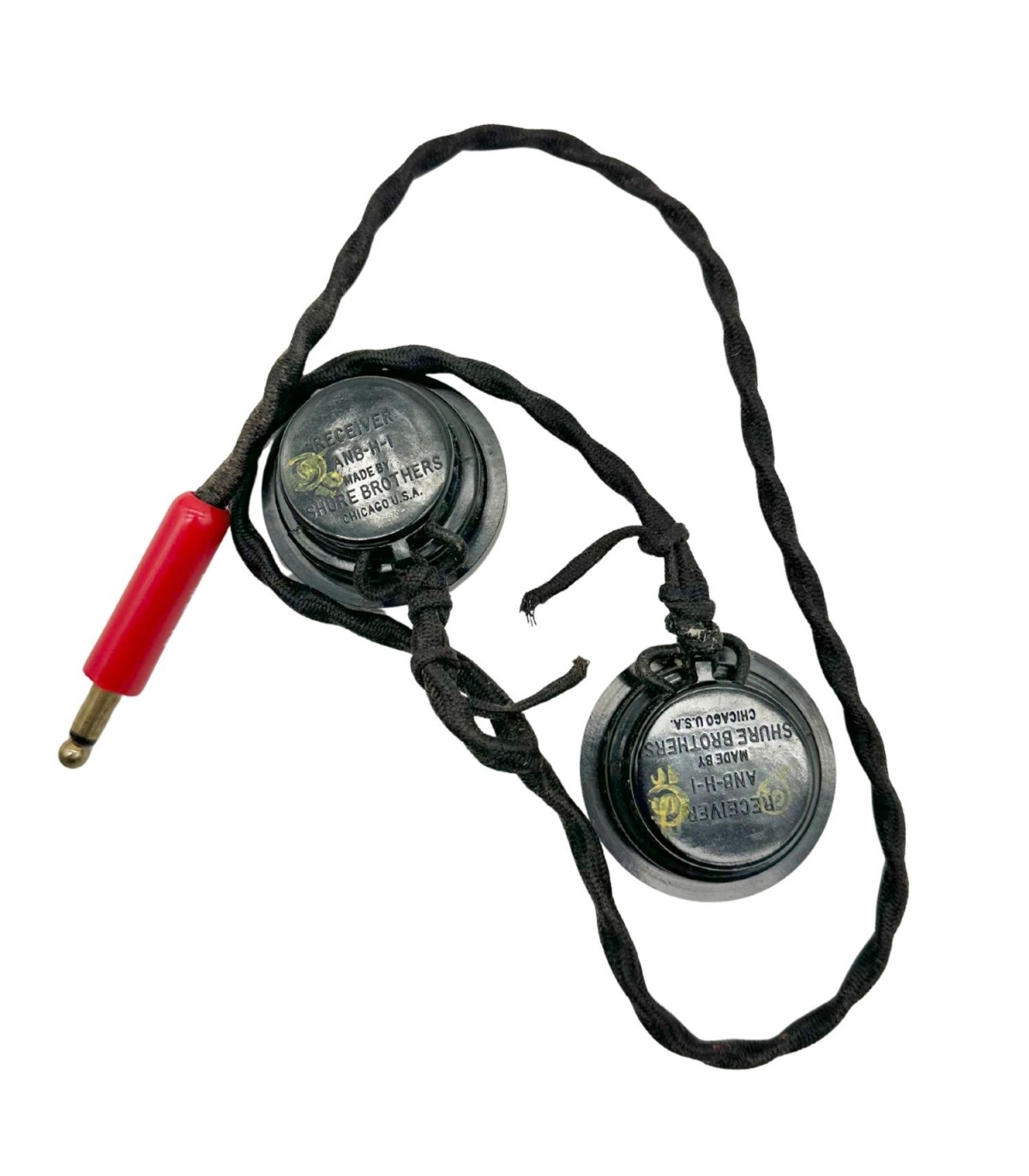 Superbe paire d'écouteurs ANB-H-1 fabriqué par SHURE BROTHERS Chicago U.S.A. neuf de stock ! Cet exemplaire est accompagné de son cordon et de sa prise PL-354. Exemplaire utilisé au sein de l'US Army Air Force pendant la deuxième guerre.