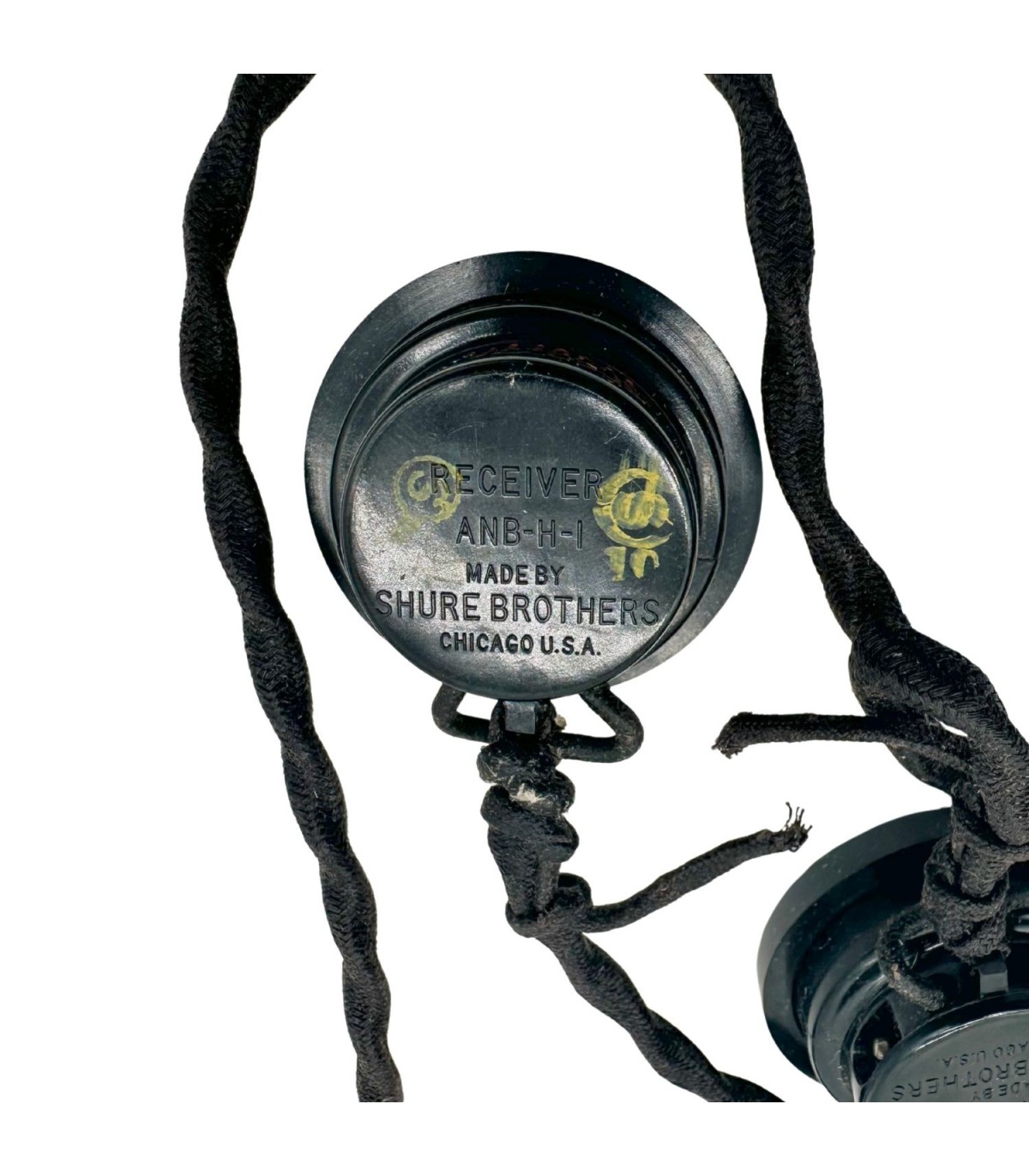 Découvrez une authentique paire d’écouteurs ANB-H-1, fabriquée par la célèbre société américaine Shure Brothers Inc., Chicago (U.S.A.) durant la Seconde Guerre mondiale.