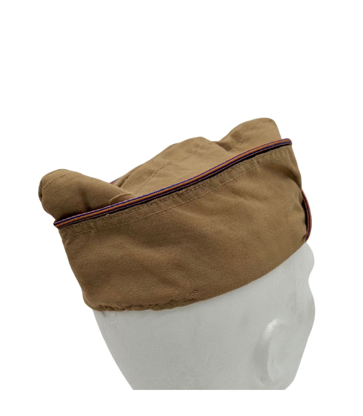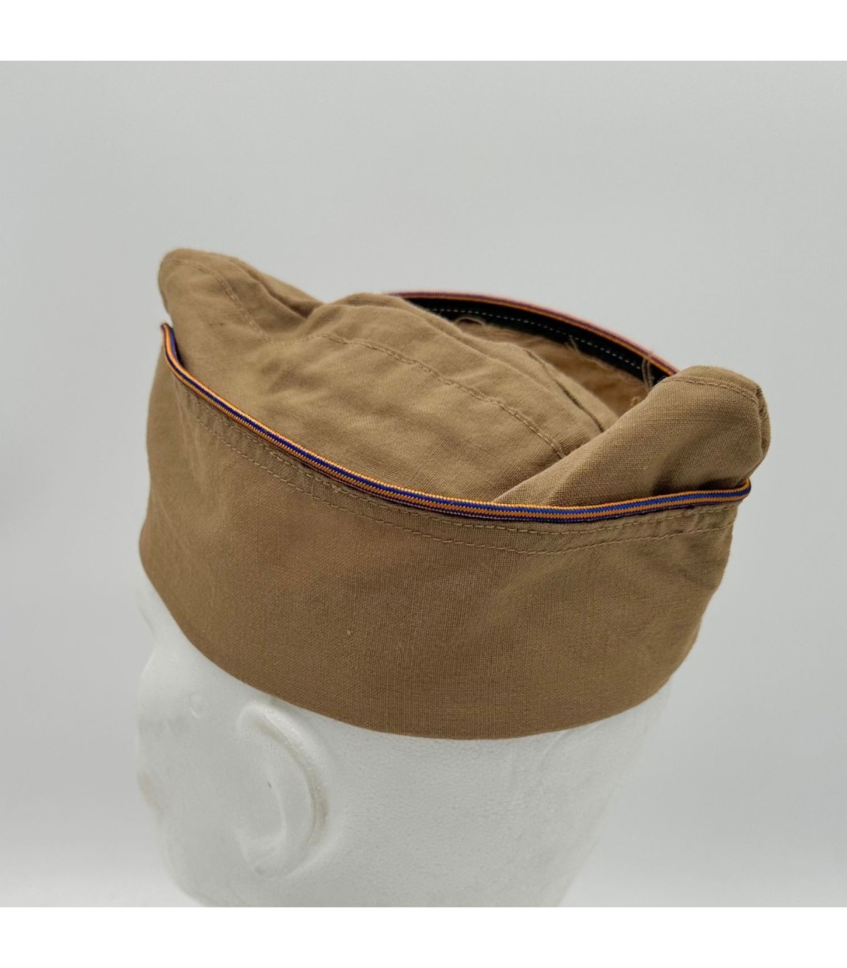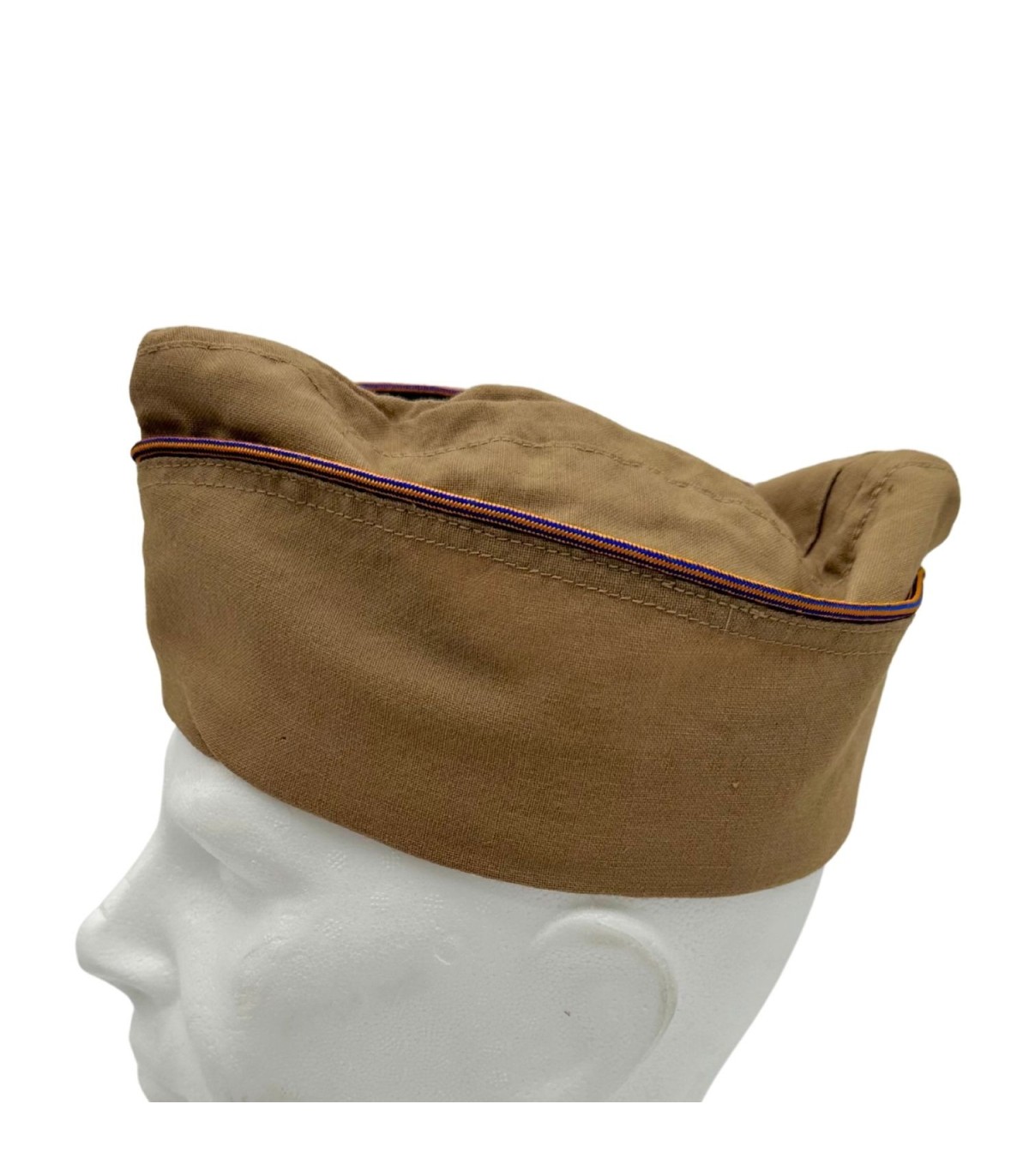 Calot de sortie (Garrison Cap) US Army Air Forces, en tissu chino kaki, porté avec les uniformes d’été et de service léger. Modèle de fabrication tailleur, offrant une qualité nettement supérieure aux productions réglementaires standard.