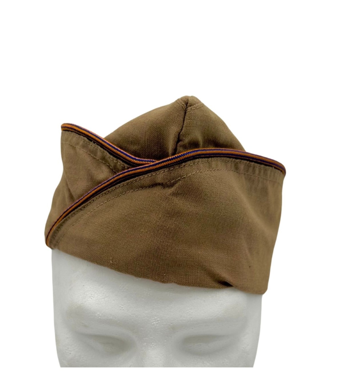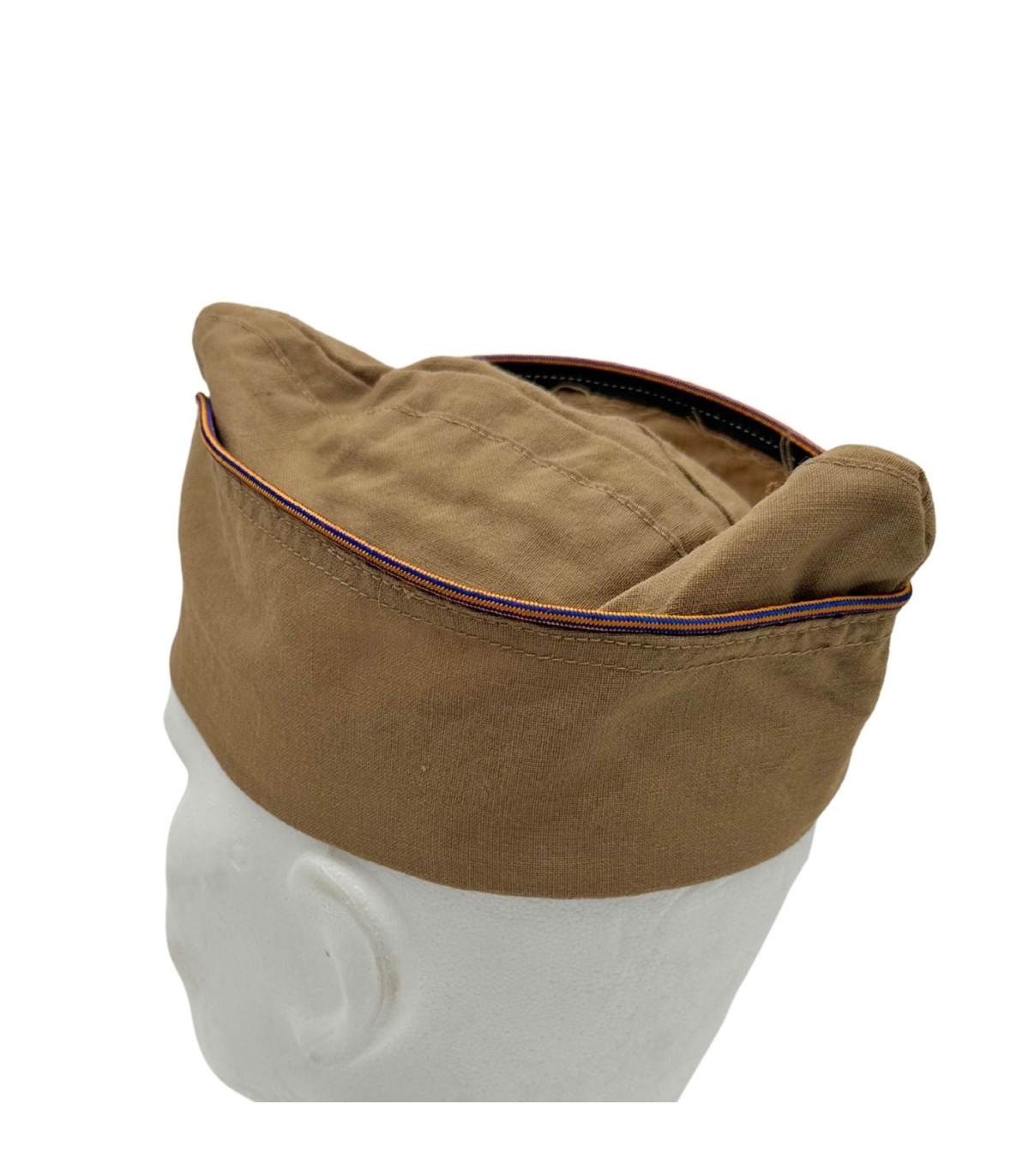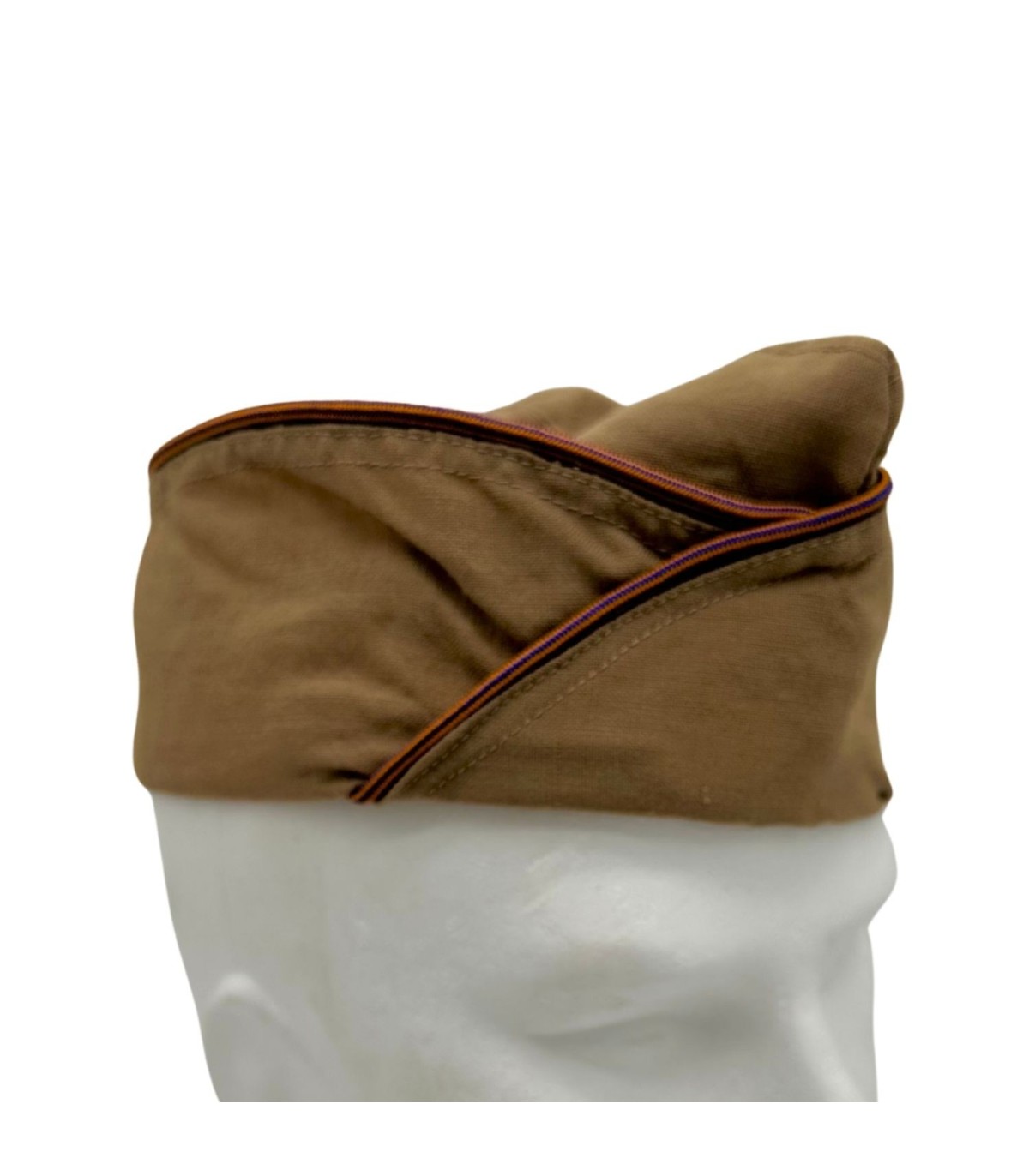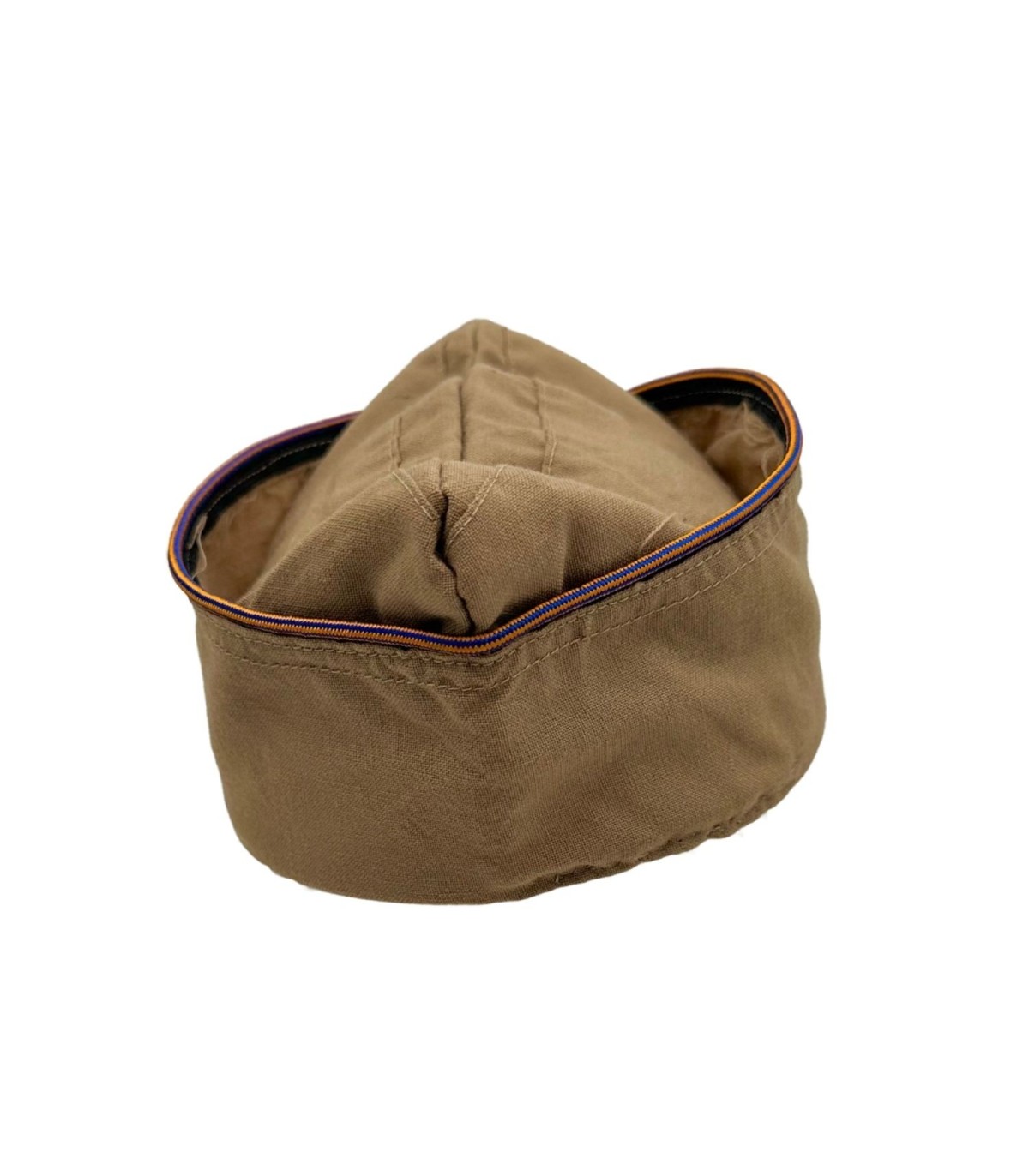 Calot de sortie (Garrison Cap) US Army Air Forces, en tissu chino kaki, porté avec les uniformes d’été et de service léger. Modèle de fabrication tailleur, offrant une qualité nettement supérieure aux productions réglementaires standard.