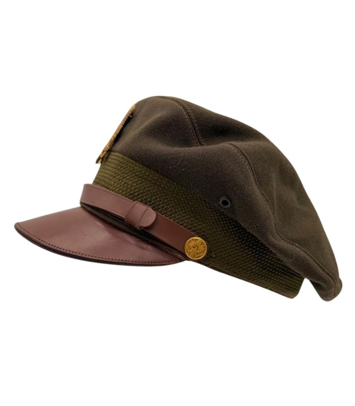 Visière Souple : Contrairement aux modèles de service standard à visière rigide, celle-ci possède la visière en cuir souple iconique des modèles de vol, parfaitement conservée.
