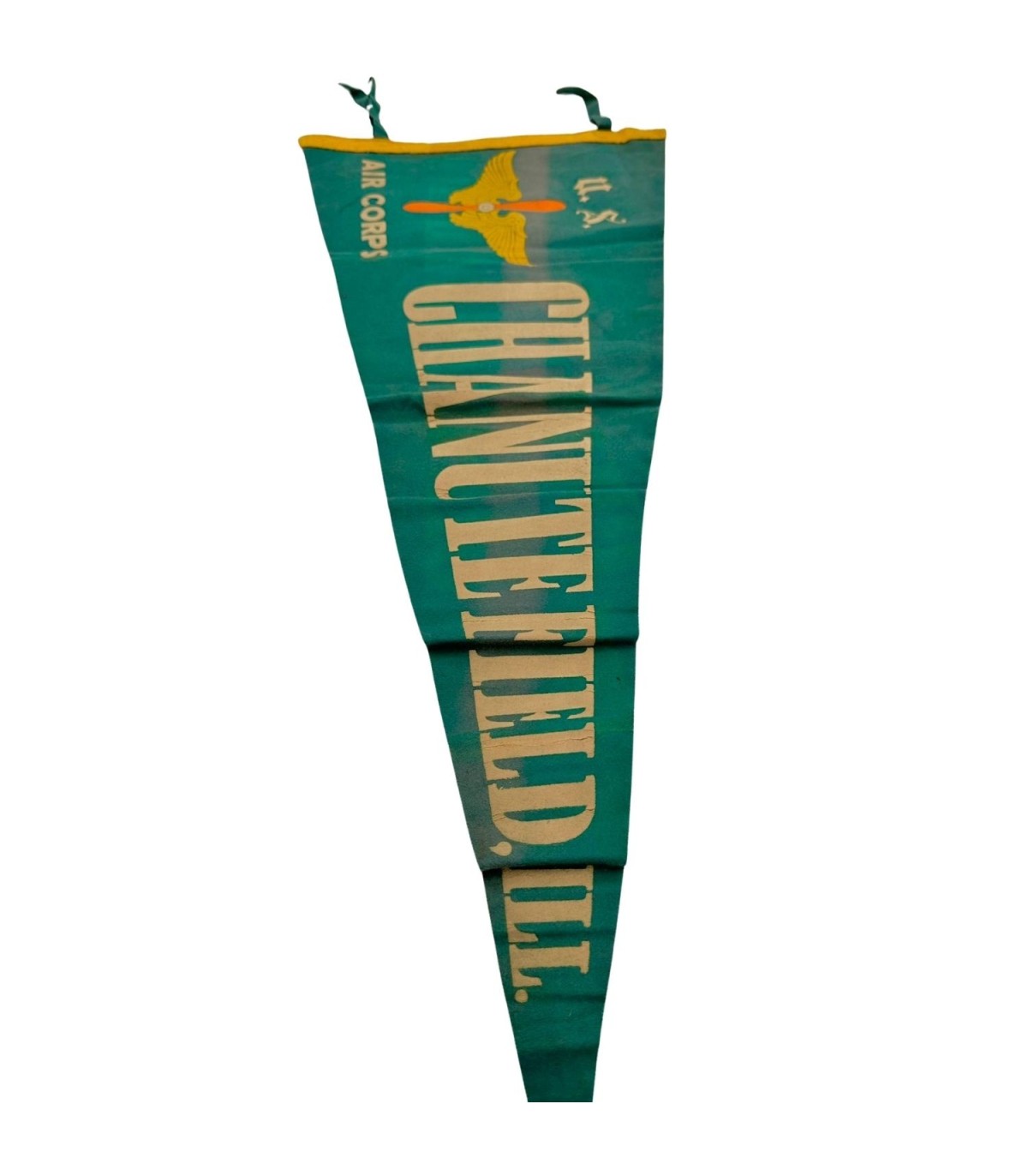 Fanion original de l’US Air Corps, provenant de Chanute Field (Illinois), base emblématique de la formation technique de l’aviation américaine durant la Seconde Guerre mondiale. Chanute Field fut un centre majeur d’instruction pour les mécaniciens et spécialistes d’armement avant leur affectation sur les théâtres d’opérations.