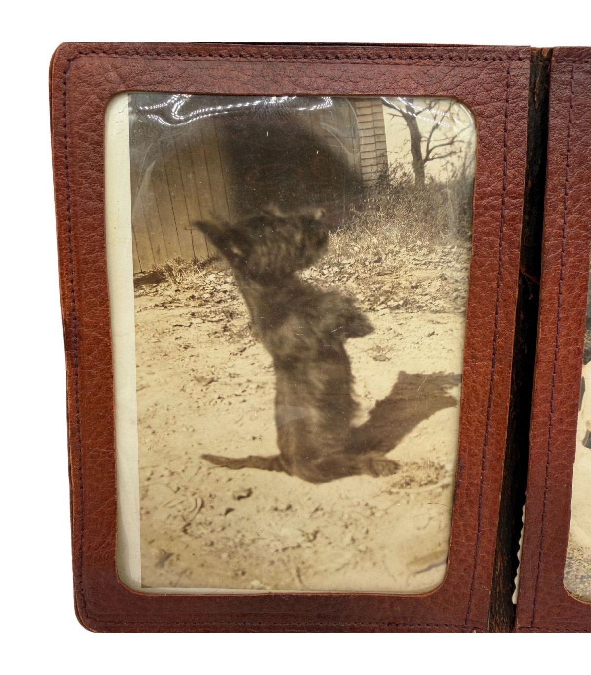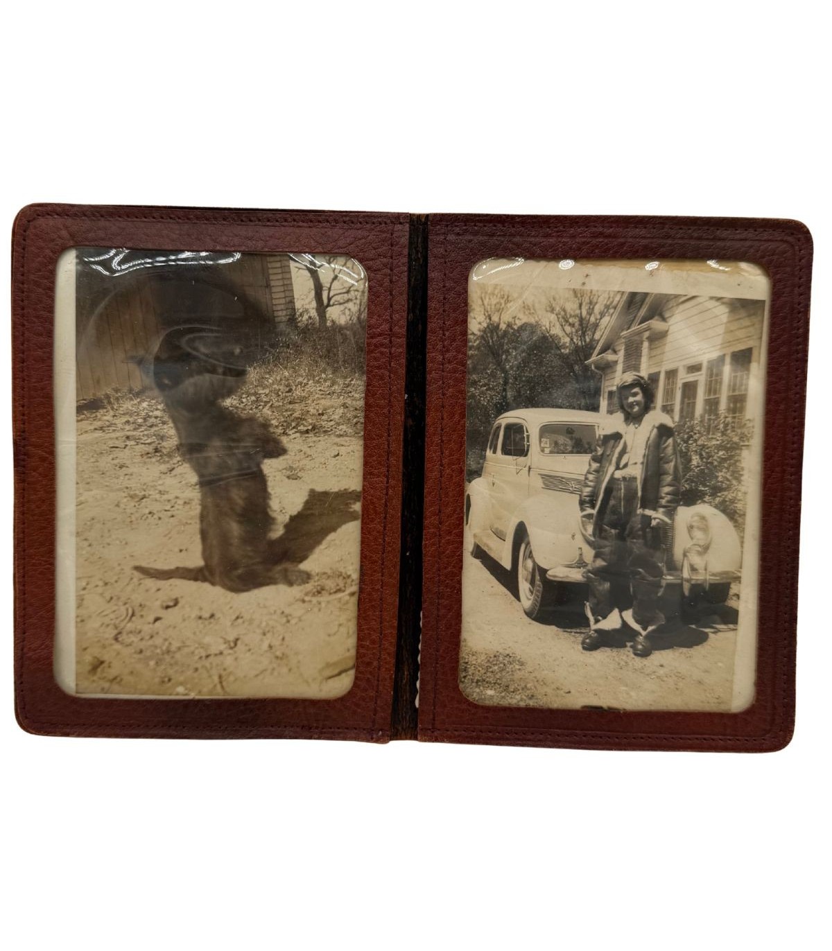 Ce portefeuille n'est pas un simple accessoire de cuir, c'est une capsule temporelle. Emporté dans la poche d'un blouson de vol ou d'une combinaison, il contenait les deux choses les plus chères à un soldat loin de chez lui : le souvenir de sa compagne et celui de son fidèle compagnon à quatre pattes.