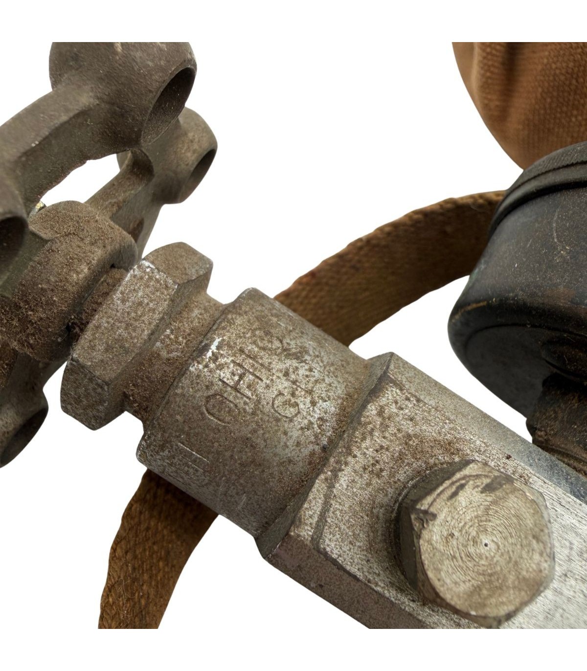 Élément crucial pour les équipages de B-17 et B-24, la bouteille d'oxygène individuelle type H-1 permettait aux aviateurs de se déplacer à haute altitude. Cet exemplaire authentique, daté du 12 décembre 1943, est une pièce de choix pour tout collectionneur de matériel aéronautique de la Seconde Guerre mondiale.