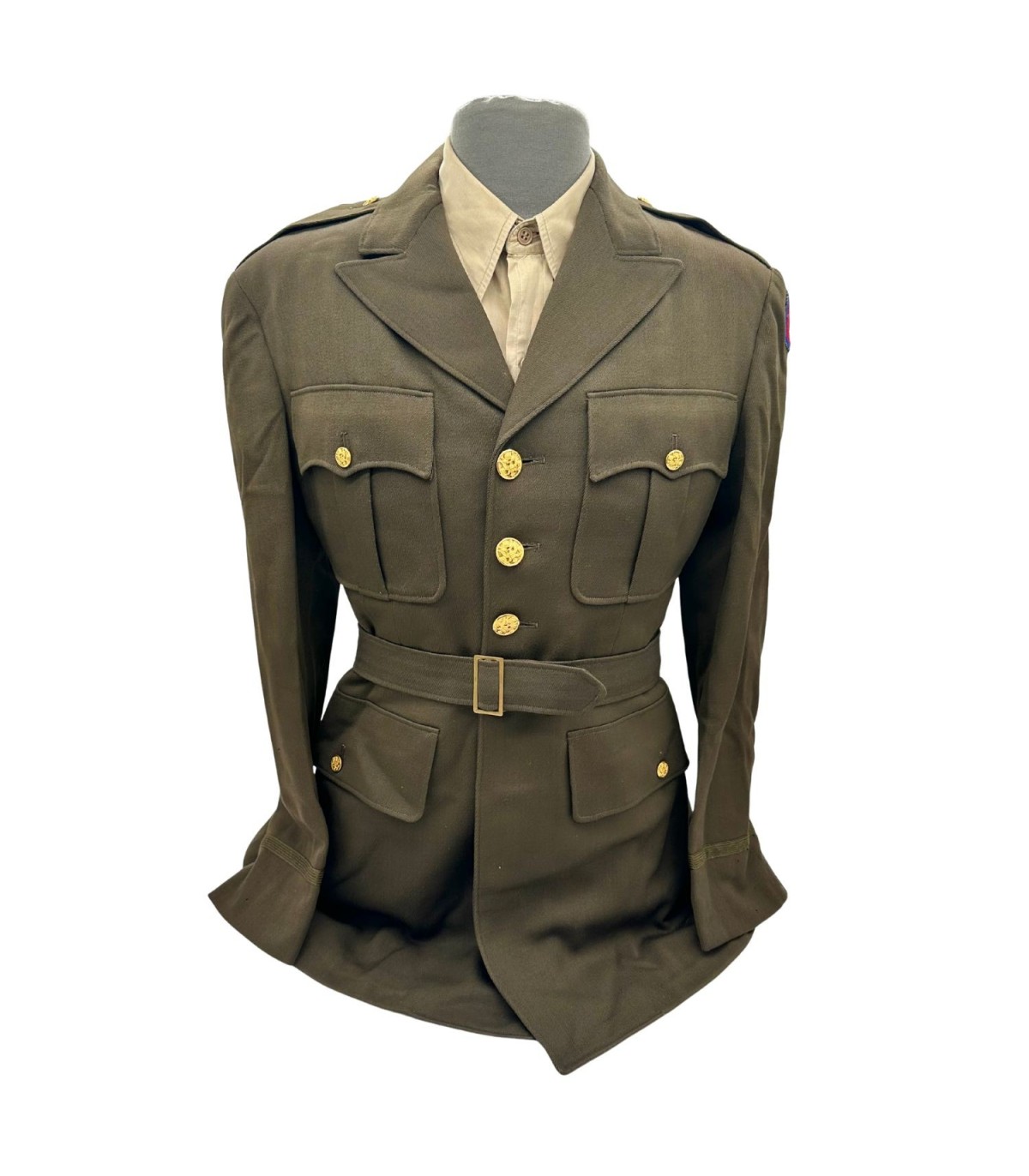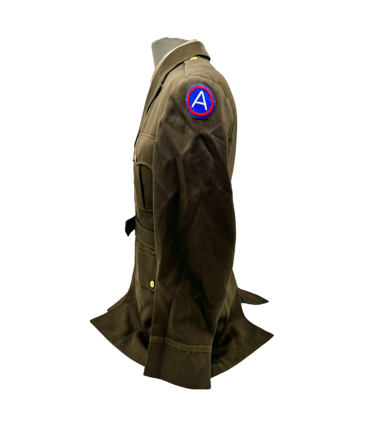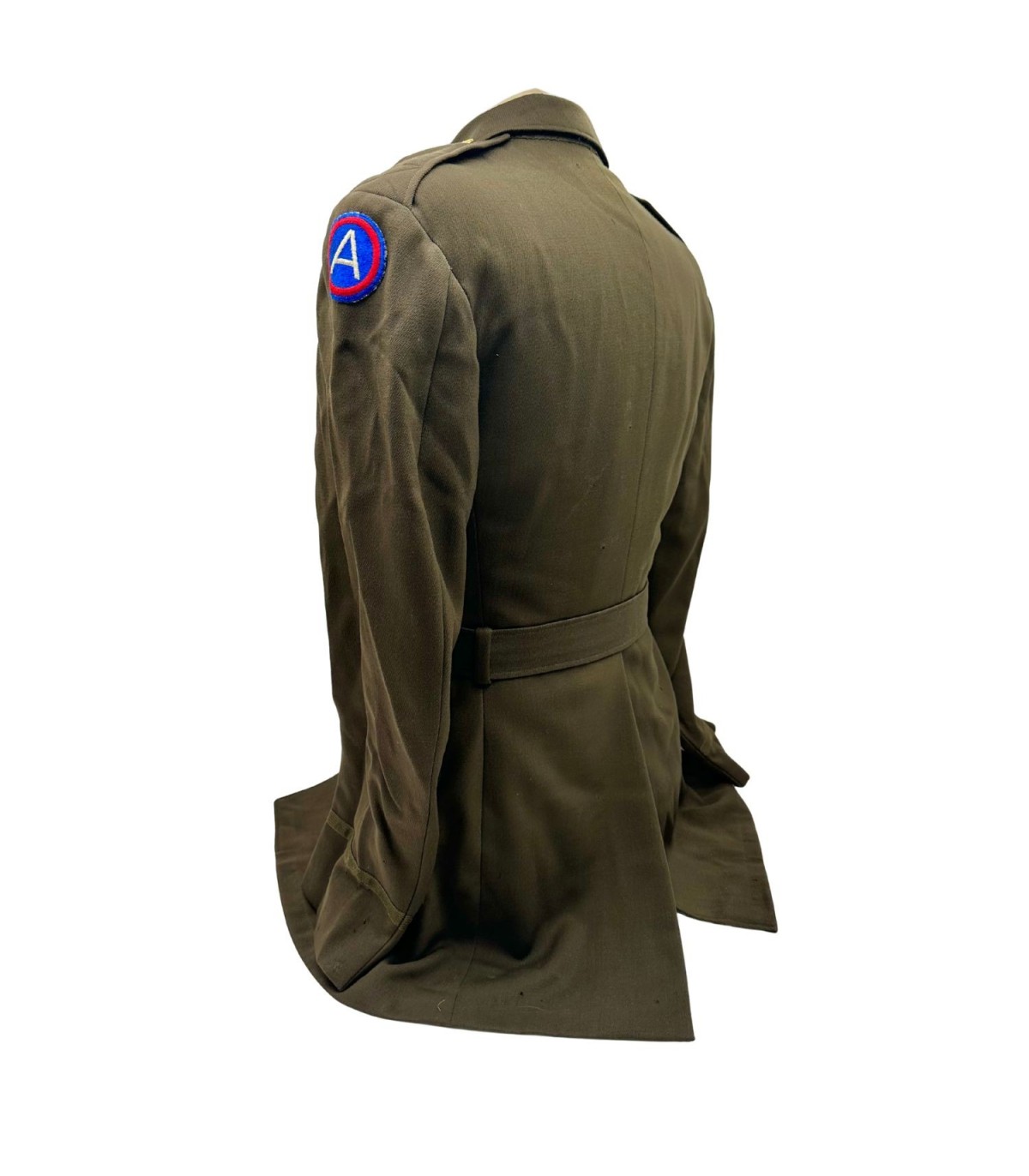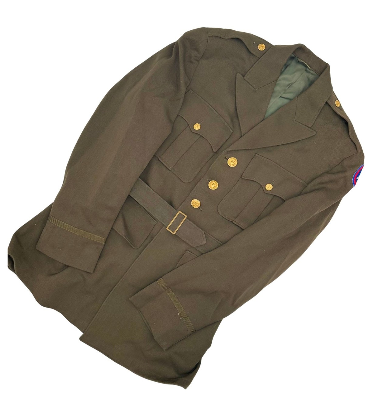 Découvrez une pièce exceptionnelle de l'histoire militaire avec cette veste de Classe A OD51 pour officier de la Seconde Guerre mondiale. Confectionnée dans les années 1940 pour les officiers de l'armée américaine, cette veste est un symbole de l'engagement et du dévouement des forces armées. Fabriquée en laine de haute qualité, elle allie durabilité et confort. L'état de cette veste est remarquable, conservant des marques d'usure naturelle qui ajoutent à son authenticité et à son charme. Provenant d'une collection privée, elle a été méticuleusement préservée et est prête à être intégrée dans une nouvelle collection.