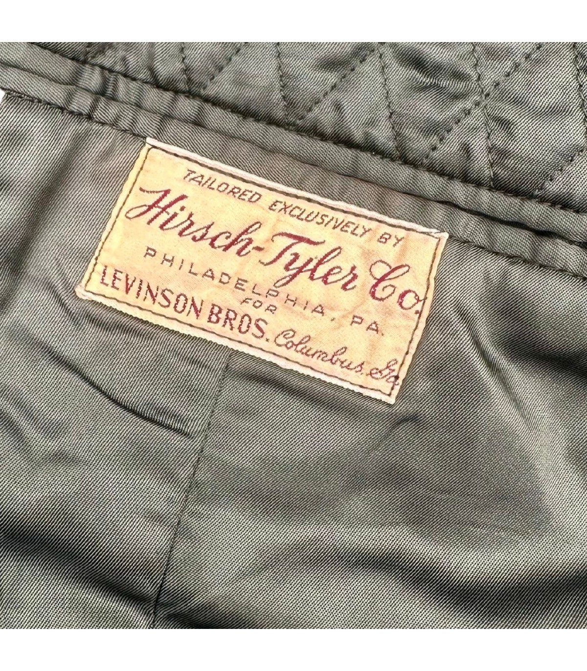 Veste classe "A" de fabrication tailleur en OD51 (chocolat) pour officier de l'armée américaine deuxième guerre. Cette veste de taille 38L (Taille Large EU) a été fabriquée par Hirsch-Tyler Co. Elle dipose de tous ses boutons et de sa ceinture.