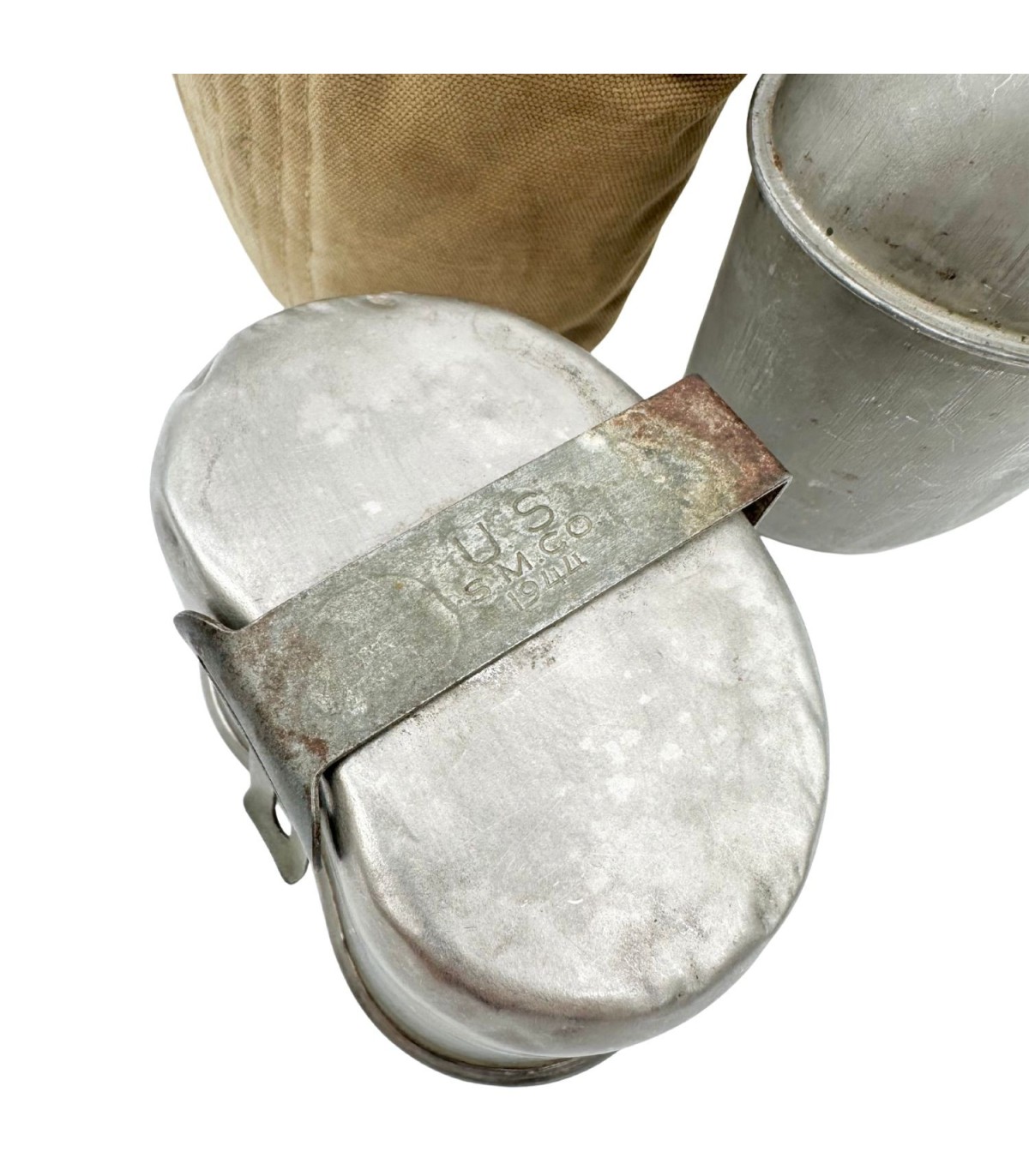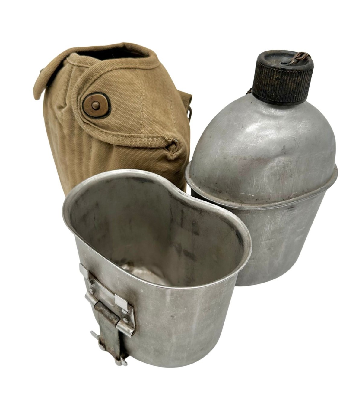 Gourde US WW2 avec housse datée 1942 + bidon et quart S.M. Co 1944