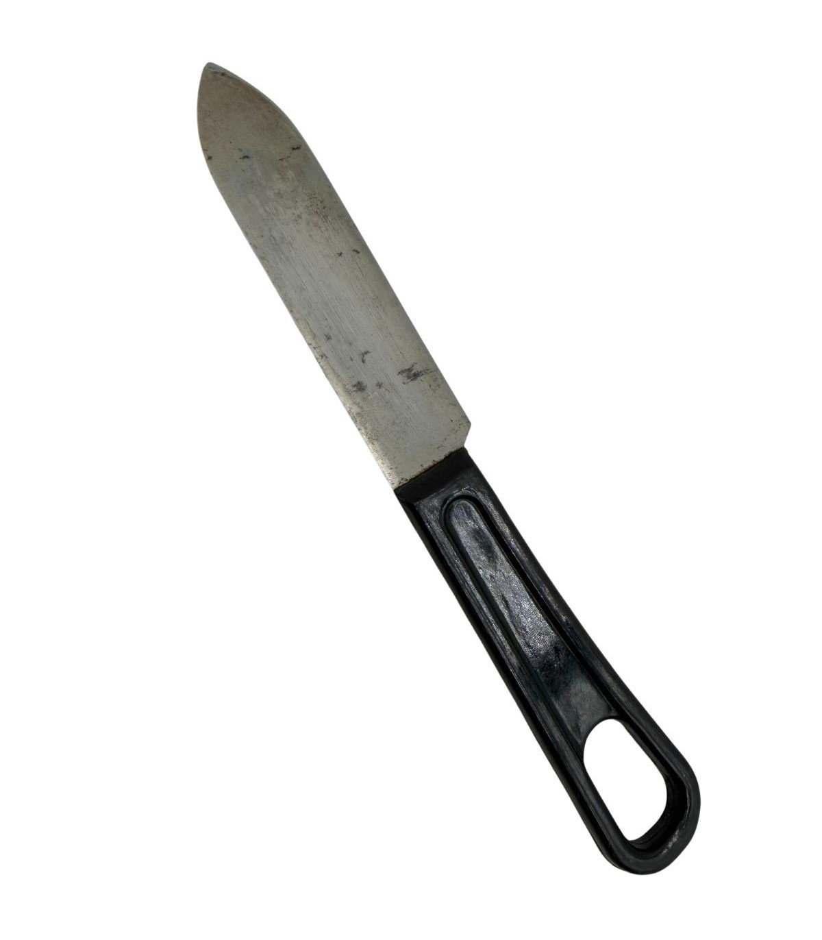 Ce couteau représente l'évolution finale du couvert individuel américain durant la Seconde Guerre mondiale. Pour économiser l'aluminium et l'acier stratégiques, l'intendance a introduit à partir de 1944 ce modèle doté d'un manche en bakélite noire (ou plastique injecté haute résistance). Plus léger et offrant une meilleure prise en main, il est devenu le standard des troupes engagées lors de la Libération et de la campagne d'Allemagne.