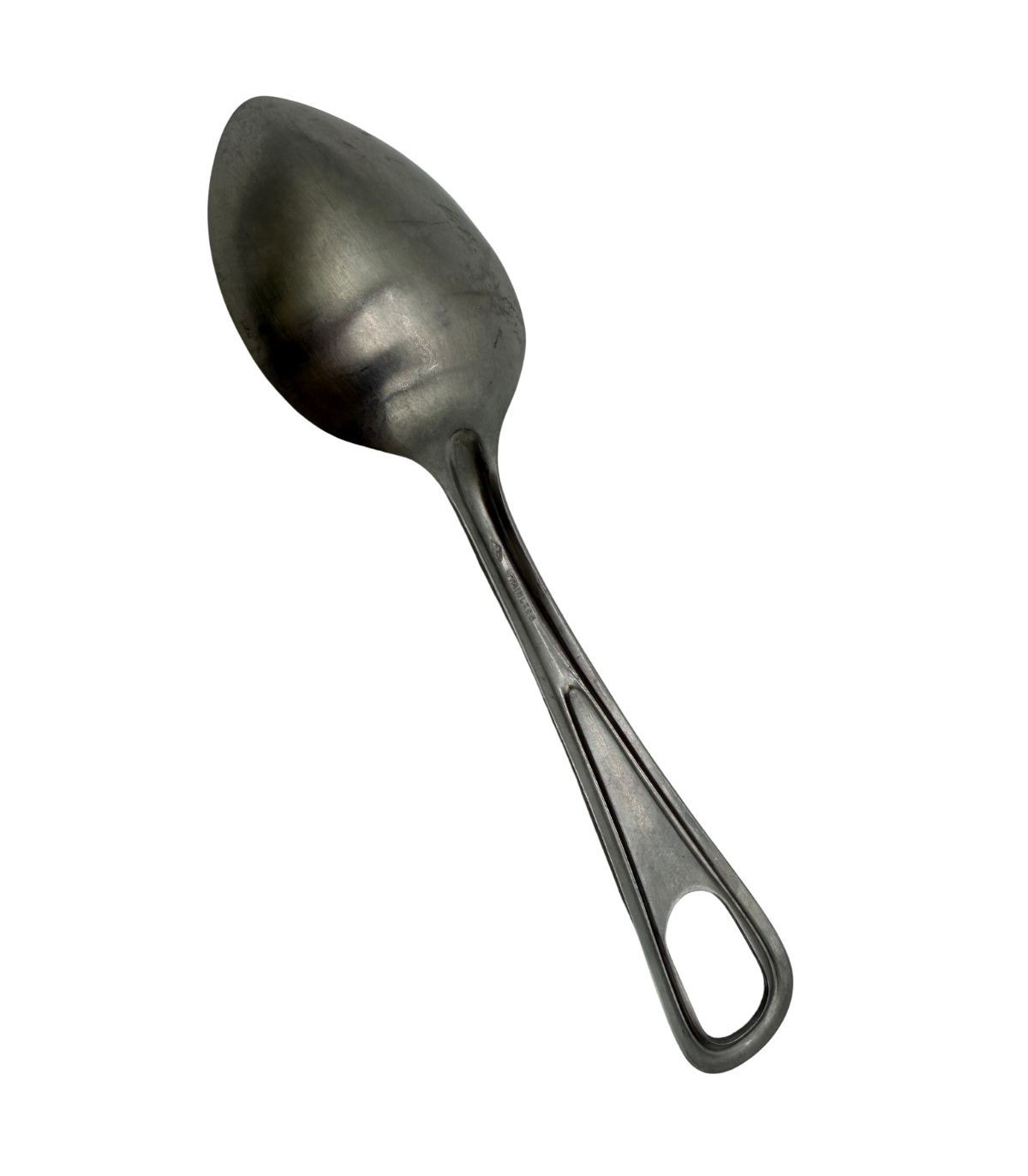 La Diamond Silver Co, orfèvre du New Jersey, a mis son savoir-faire au service de l'US Army en produisant des couverts d'une robustesse exceptionnelle. Cette cuillère témoigne de la transition où l'élégance de l'argenterie a laissé place à l'efficacité du matériel de combat.