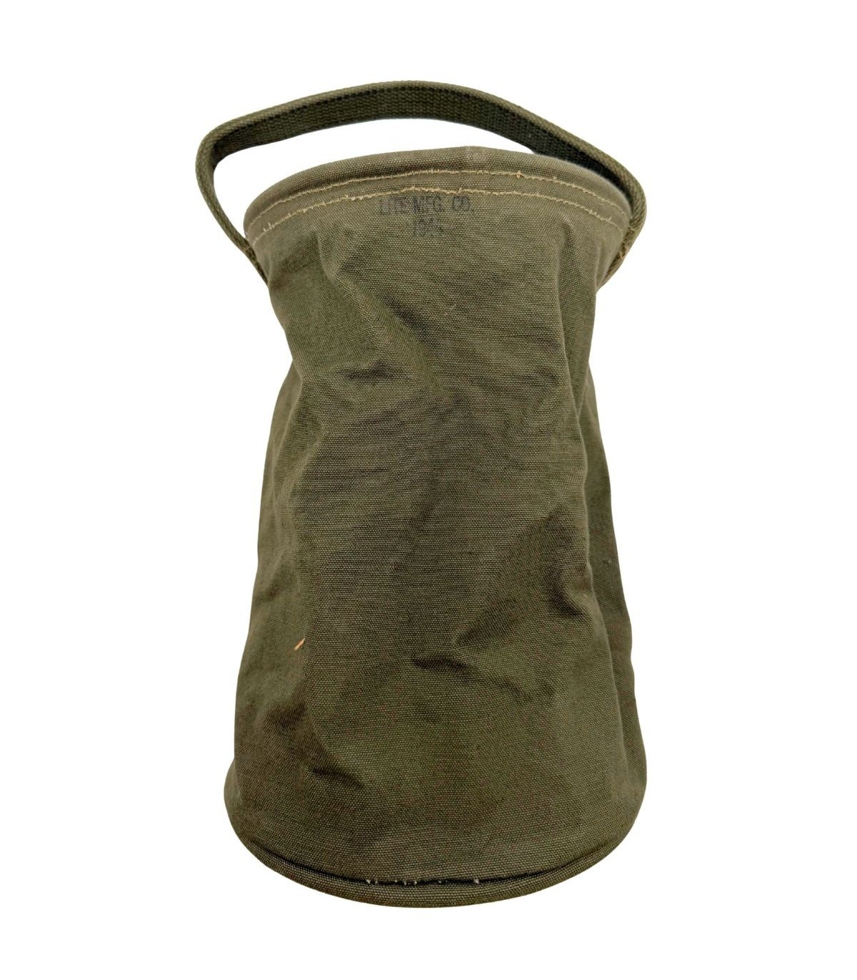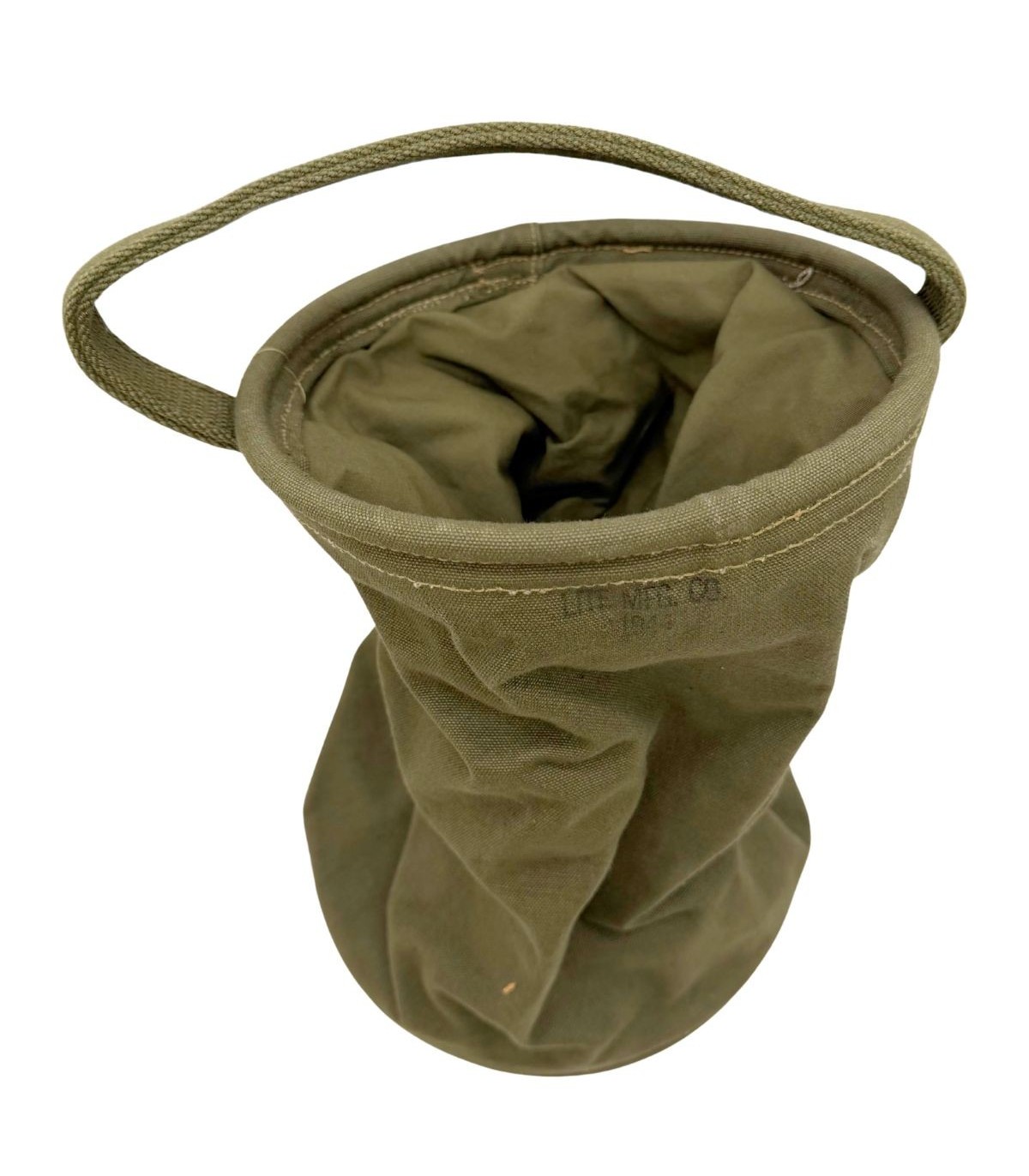Ce sac à eau de 5 litres, pièce emblématique de la logistique de front, assurait l’autonomie des troupes en mouvement. Fabriqué en 1944 par la firme LITE MFG CO, cet exemplaire est un témoin direct des campagnes de la Libération.