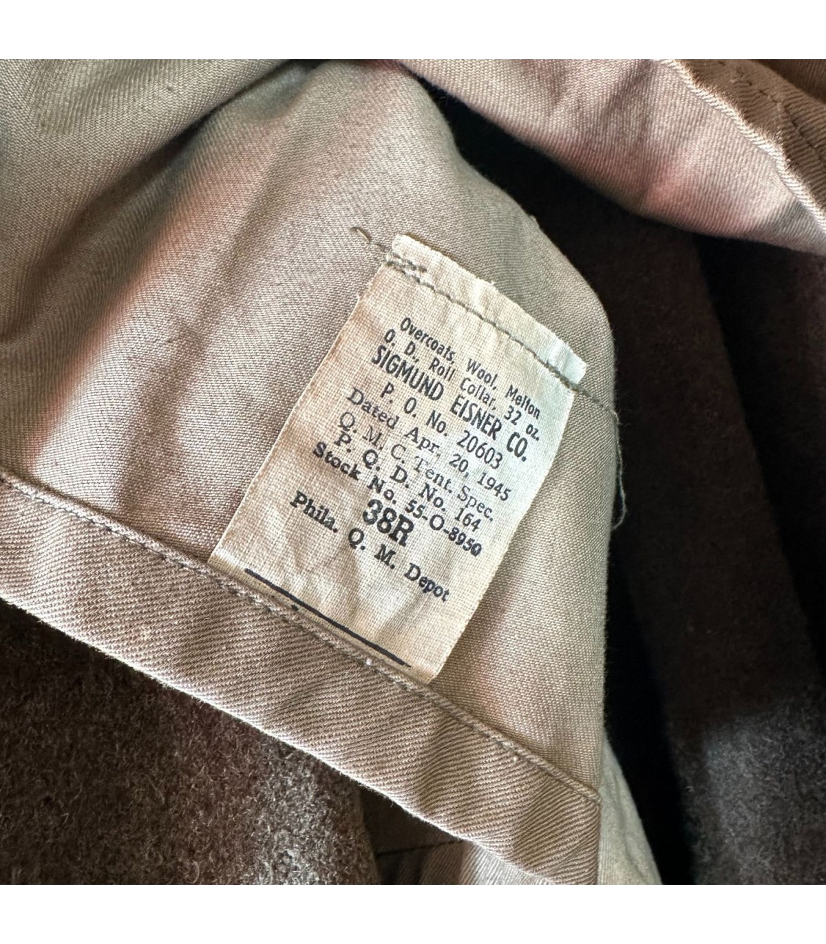Overcoat M1942 – Manteau en laine Melton OD 32oz – Avril 1945, authentique WWII