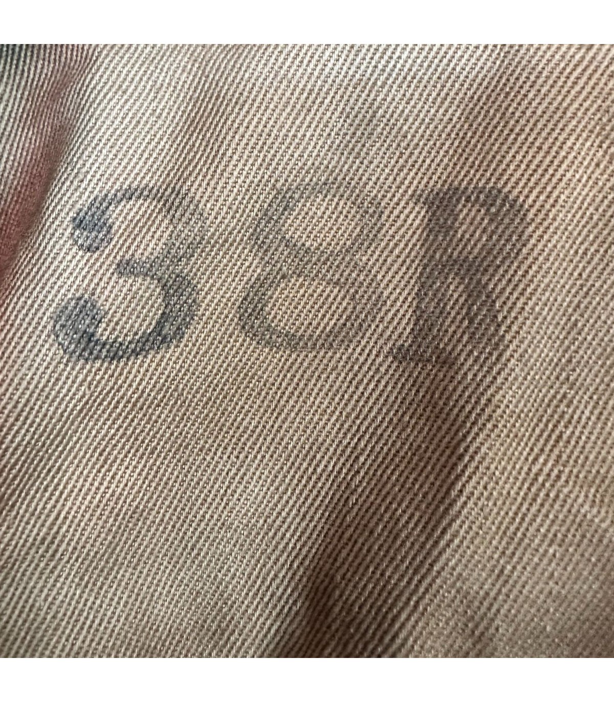 Celui-ci, daté d’avril 1945, symbolise la dernière production avant la fin du conflit, au moment où les armées alliées pénétraient en Allemagne. Chaque détail de cette pièce raconte un fragment d’histoire : la qualité du tissu, la patine du temps et la rigueur du design d’époque en font un témoignage rare de la vie du soldat américain à la fin de la Seconde Guerre mondiale.