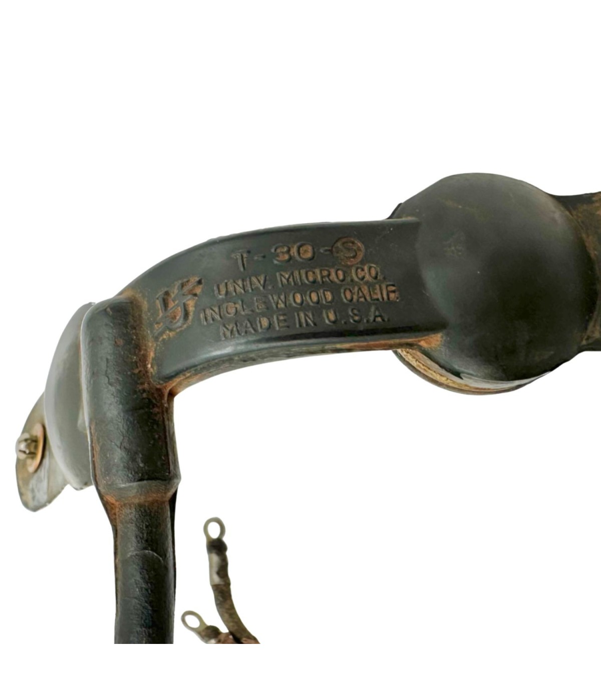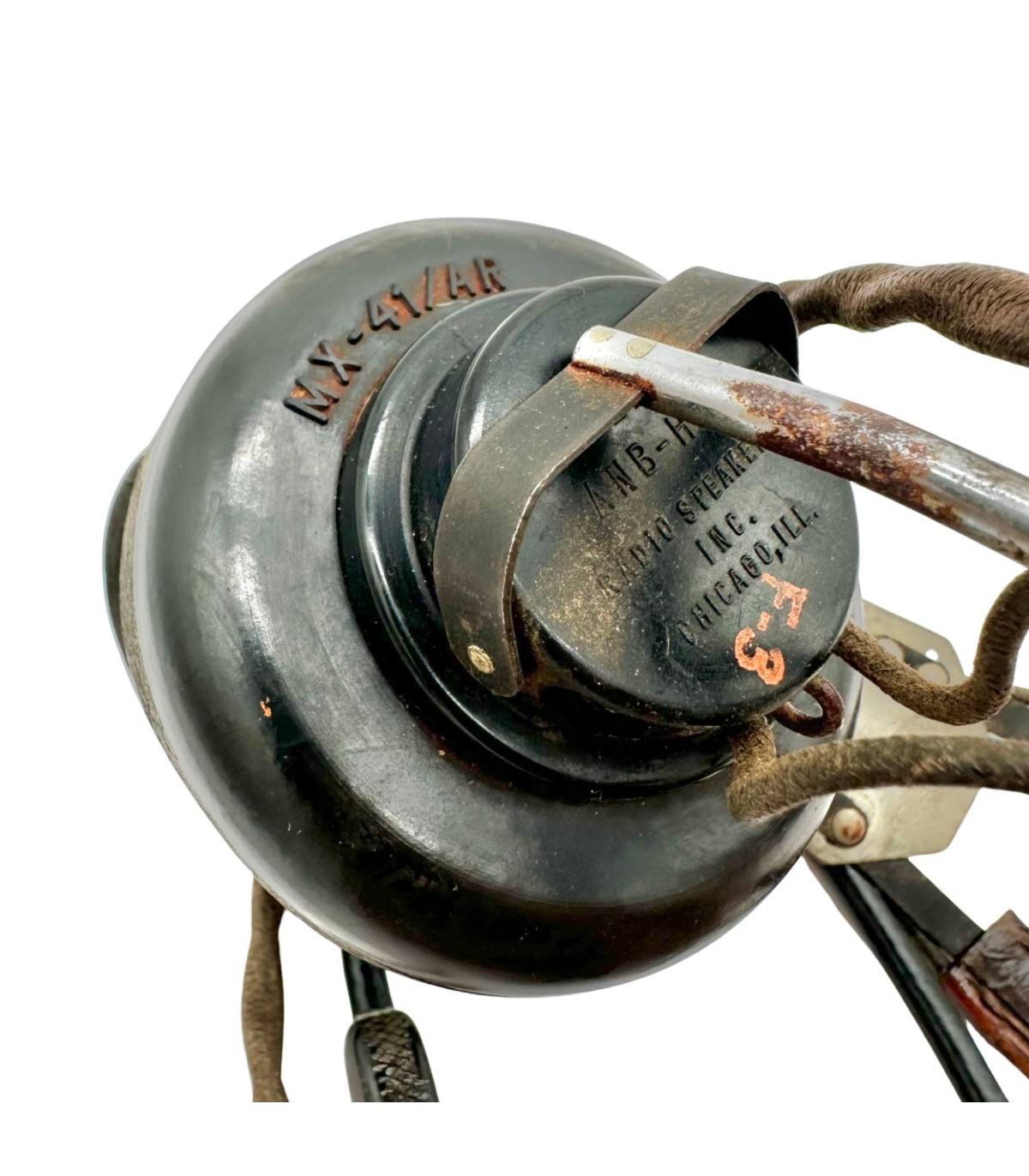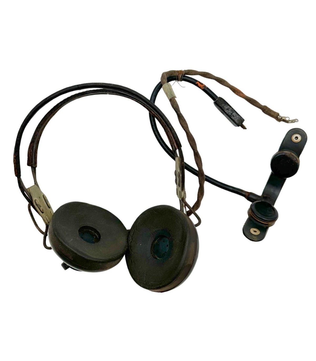 Ecouteurs ANB-H-1 sur harceau HB-7 fabriqué par RADIO SPEAKERS INC. d'origine deuxième guerre pour l'US Army Air Force. Les écouteurs sont montés avec des coussins MX-41/AR. Ces écouteurs sont accompagné d'un Laryngophone T-30-S fabriqué par UNIV. MICRO. CO INGLEWOOD CALIF. Prise PL-354 absente.