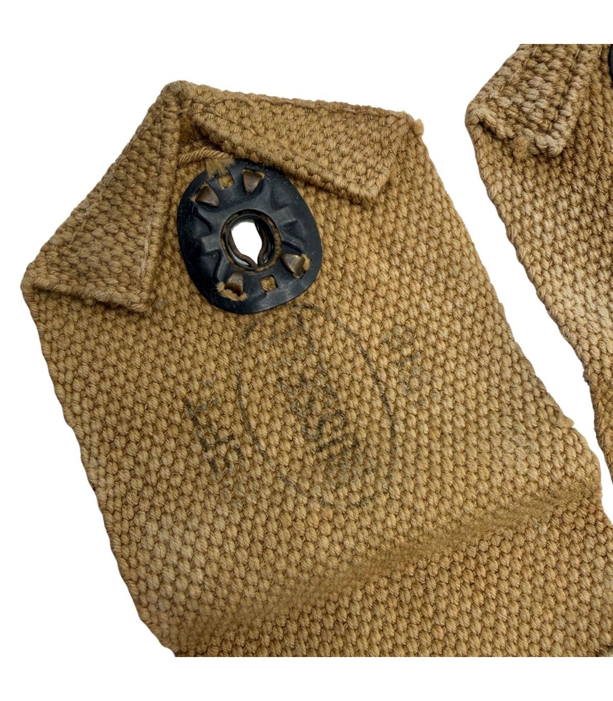 Ce ceinturon-cartouchière est le modèle emblématique du corps expéditionnaire américain (AEF) durant la Première Guerre mondiale. Conçu pour transporter 100 cartouches de calibre .30-06 dans dix poches, il est ici présenté dans une configuration de réassemblage d'époque tout à fait cohérente. Les deux géants du tissage militaire américain se partagent cette pièce : un côté fabriqué par Mills et l'autre par Russell.