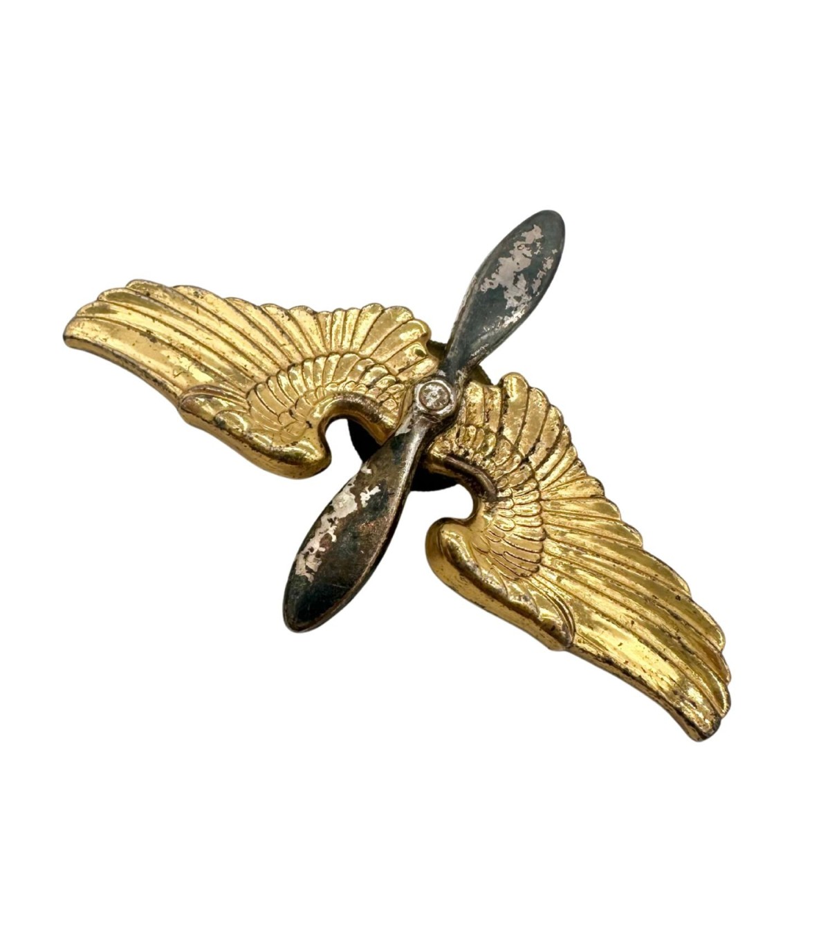 Cet insigne était porté fièrement sur la casquette de service des cadets pilotes de l’USAAF, en attente de leur brevet de pilote. Il représente les ailes et l'hélice, symboles emblématiques de la puissance aérienne des États-Unis pendant le conflit.