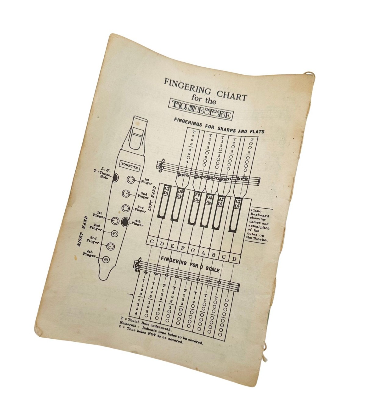 Fingering Chart for the Tonette – Livret d’origine pour flûte Tonette (WWII Era)