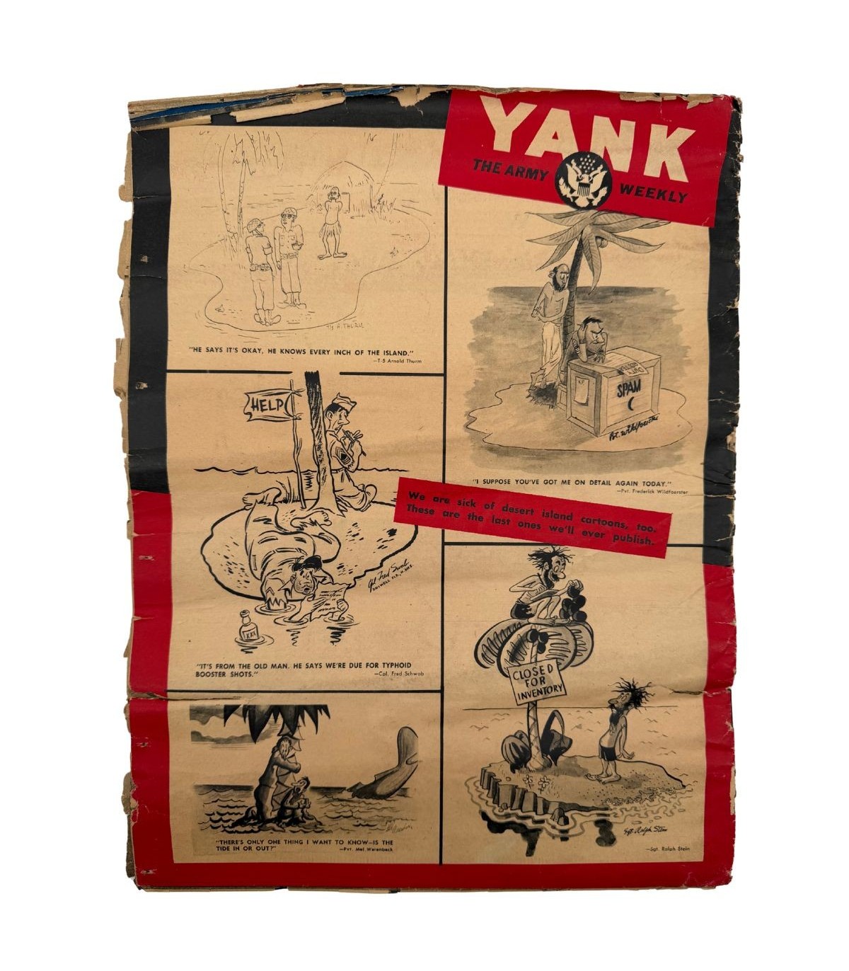 Le magazine YANK était la publication la plus populaire parmi les soldats américains durant la Seconde Guerre mondiale. Écrit "par les hommes... pour les hommes au service", il offrait un mélange unique de reportages de guerre, de bandes dessinées et de photographies.