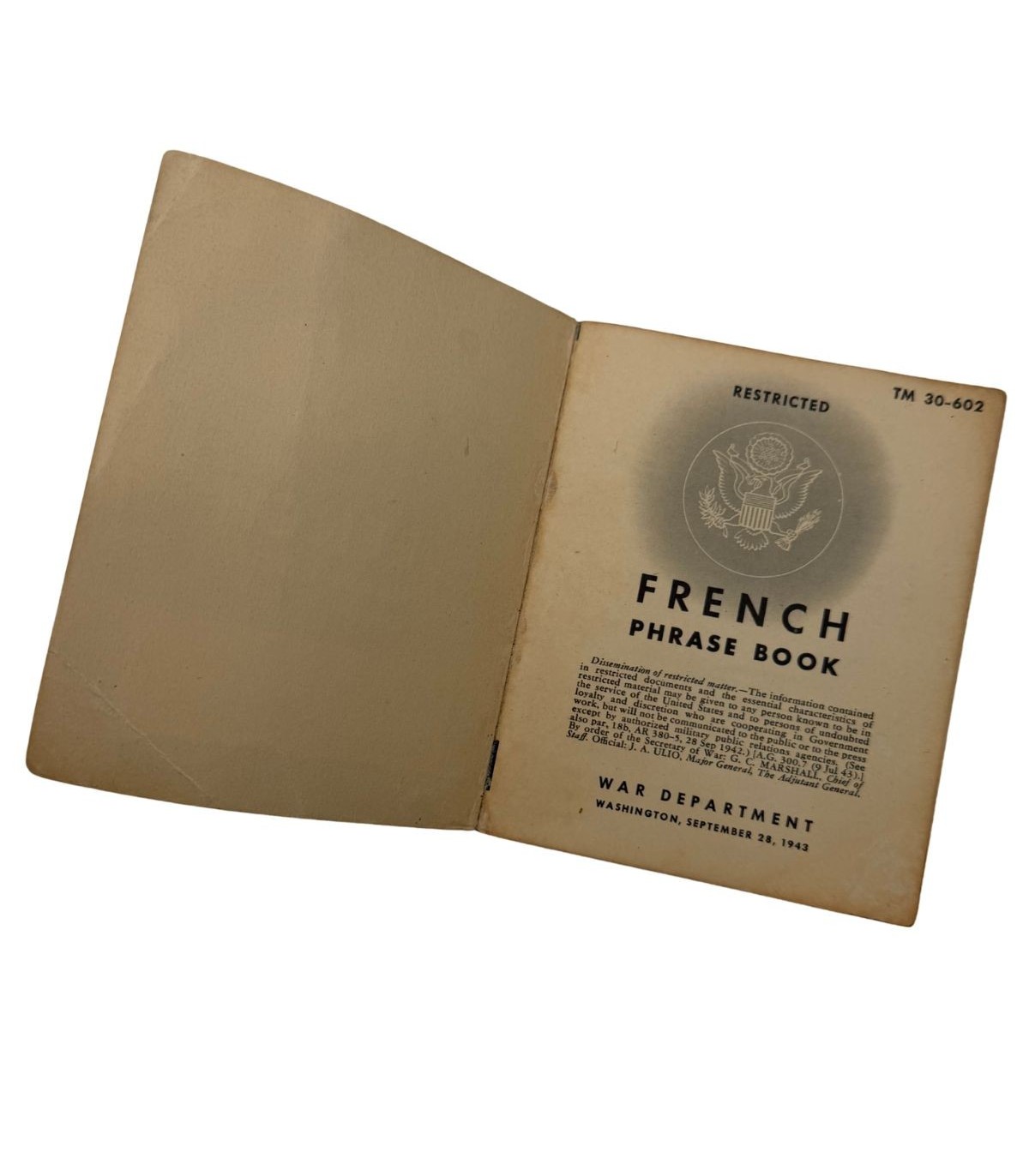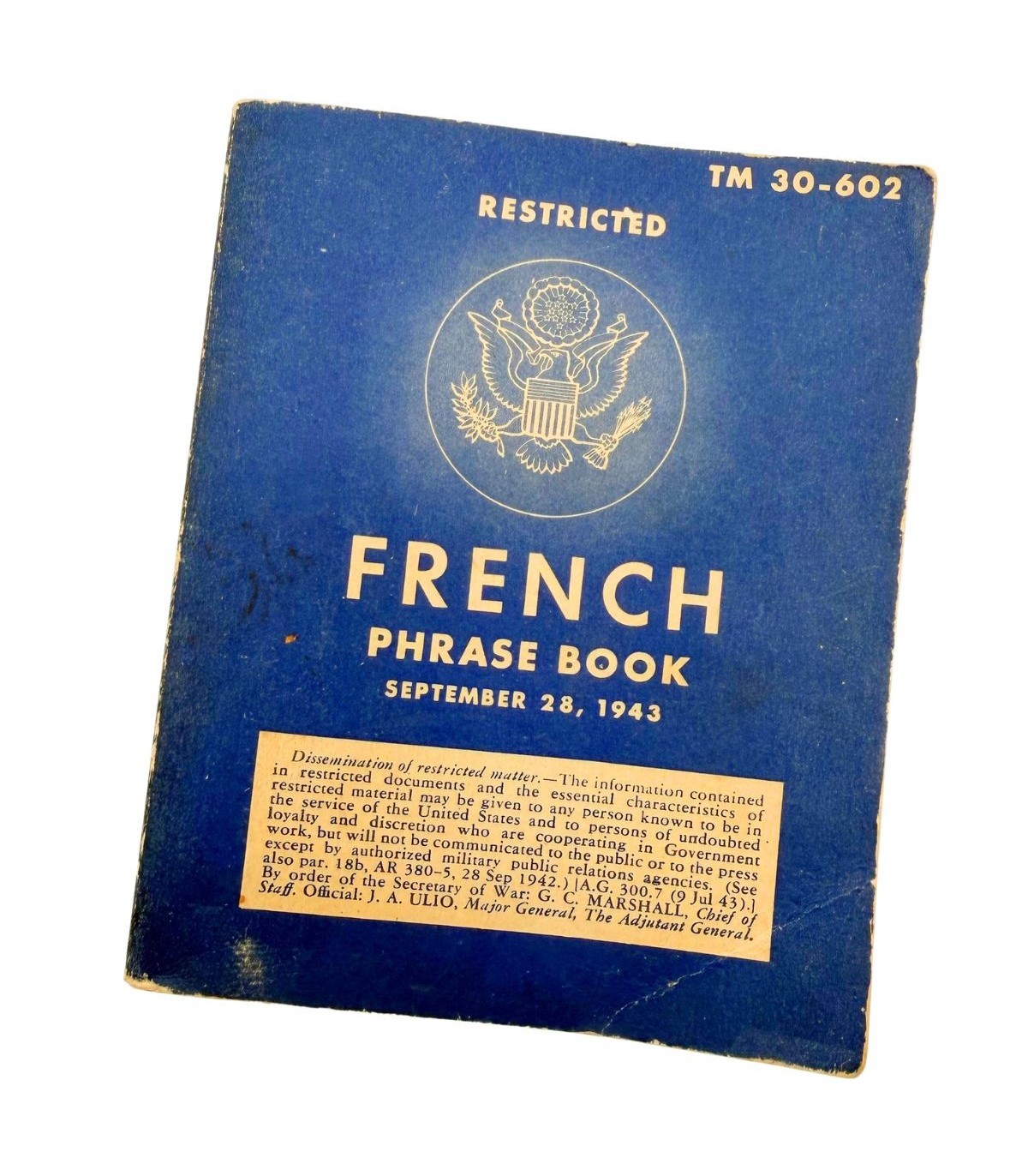 Le TM 30-602 est le guide de conversation standard distribué aux GI's avant et pendant la campagne de France. Ce petit manuel avait pour but de faciliter les interactions de base avec la population civile et les autorités locales, couvrant des besoins allant du ravitaillement aux renseignements militaires.