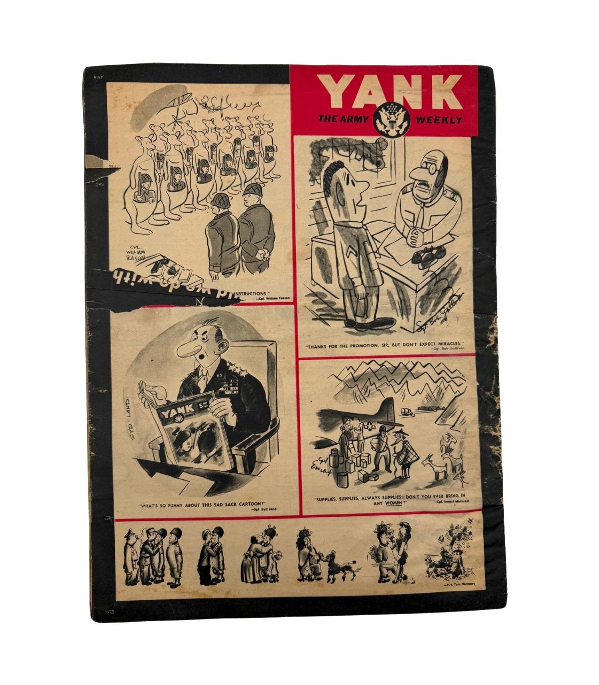 Le magazine YANK était la publication officielle la plus lue par les GI's durant la Seconde Guerre mondiale. Entièrement rédigé par des soldats pour des soldats, il mêlait reportages de guerre saisissants sur le front et rubriques plus légères, comme les célèbres "Pin-ups".