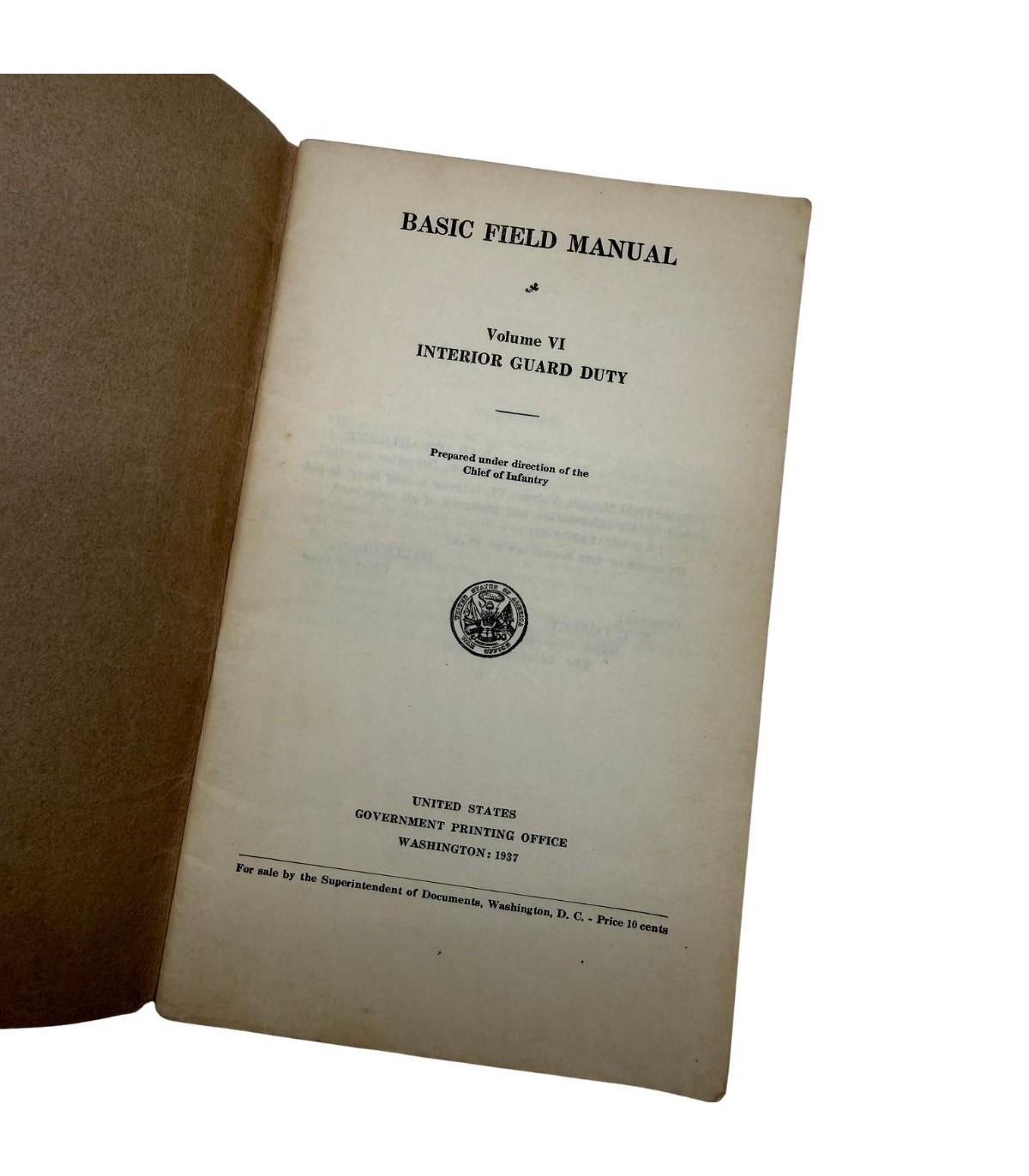 Ce Basic Field Manual, Volume VI, intitulé "Interior Guard Duty", est un document officiel du War Department. Ce manuel fournissait aux troupes les instructions rigoureuses concernant le service de garde intérieure, une composante essentielle de la discipline et de la sécurité dans les campements et installations militaires de l'US Army durant la Seconde Guerre mondiale.