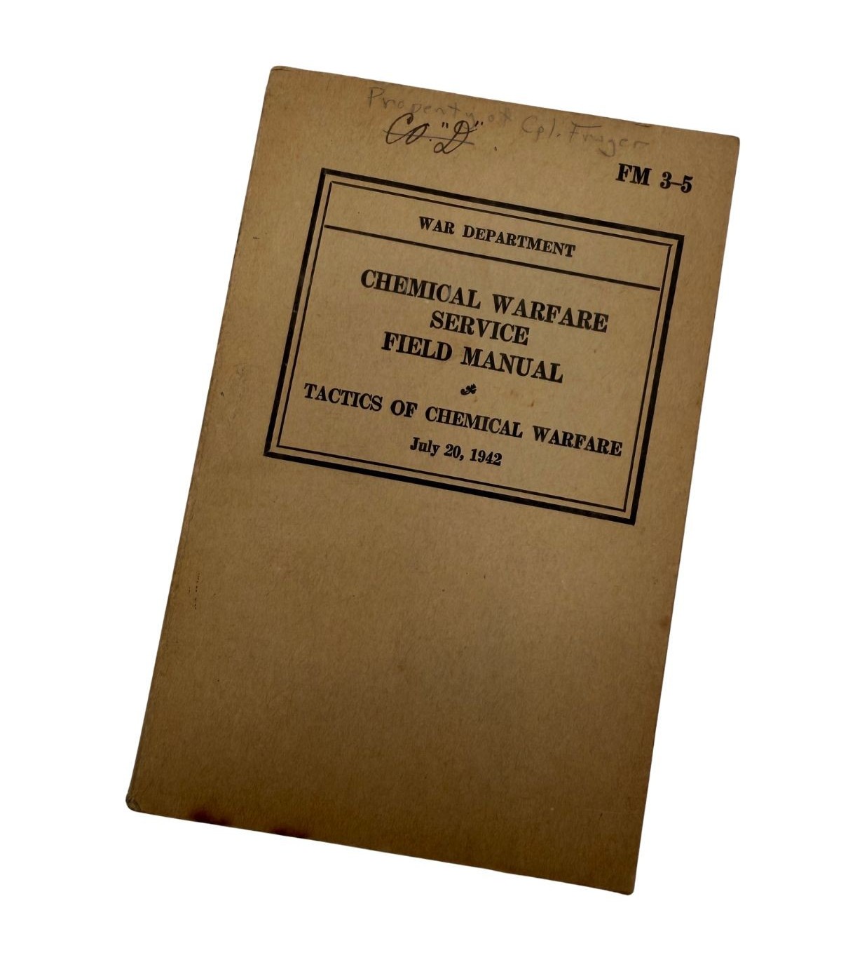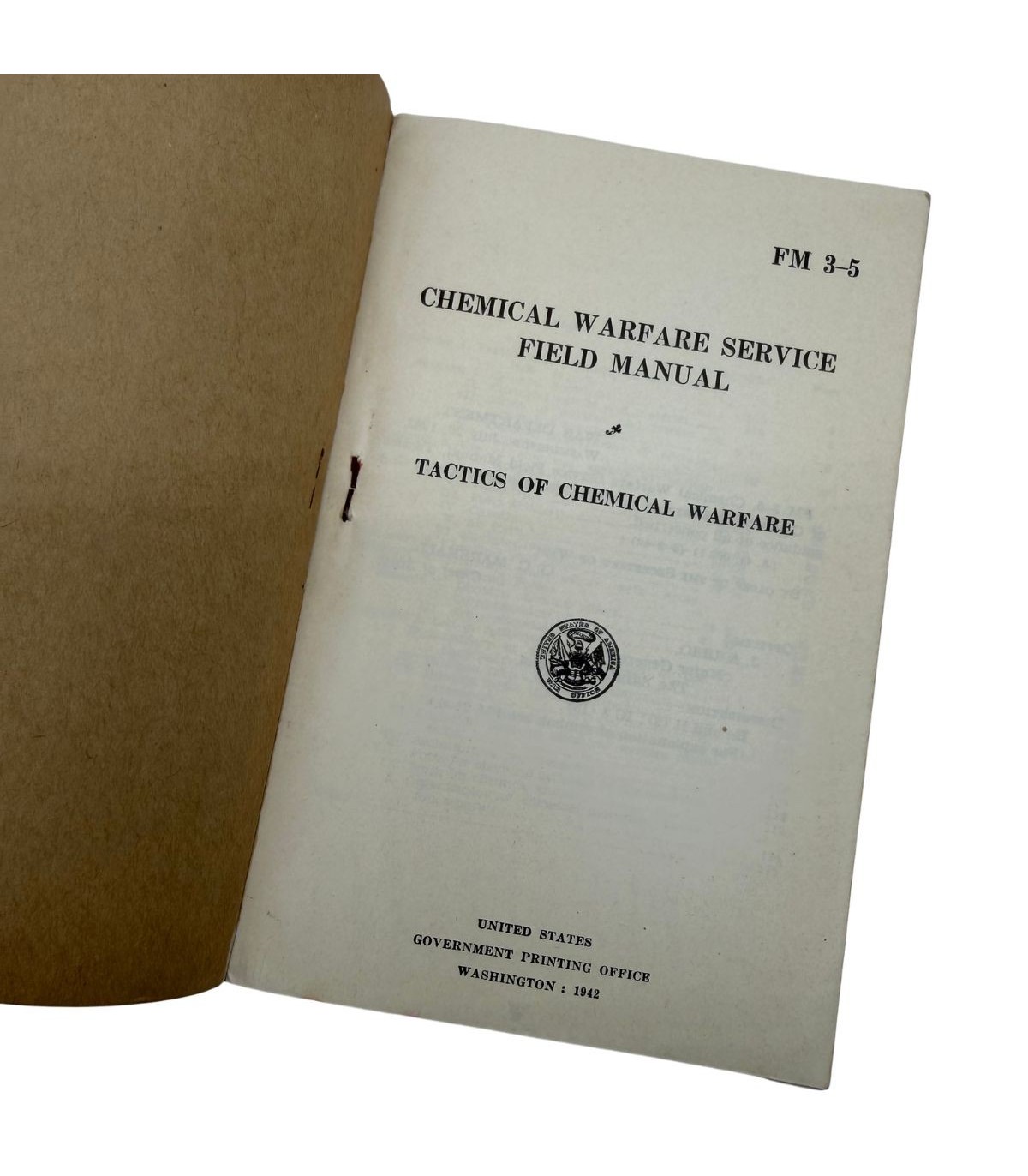 Le Field Manual FM 3-5, intitulé "Tactics of Chemical Warfare", a été publié par le War Department le 20 juillet 1942. Ce manuel était destiné à instruire les officiers et les troupes sur l'utilisation offensive et défensive des agents chimiques, une menace prise très au sérieux par l'état-major américain au début de la guerre.