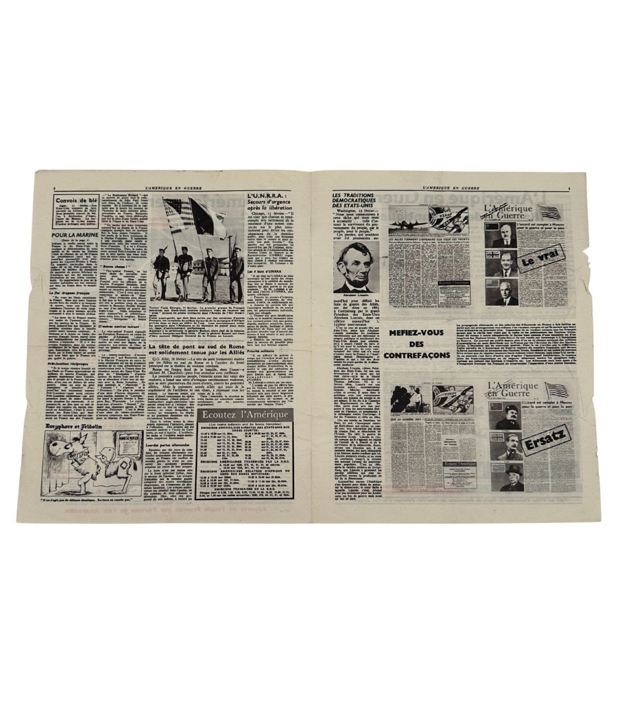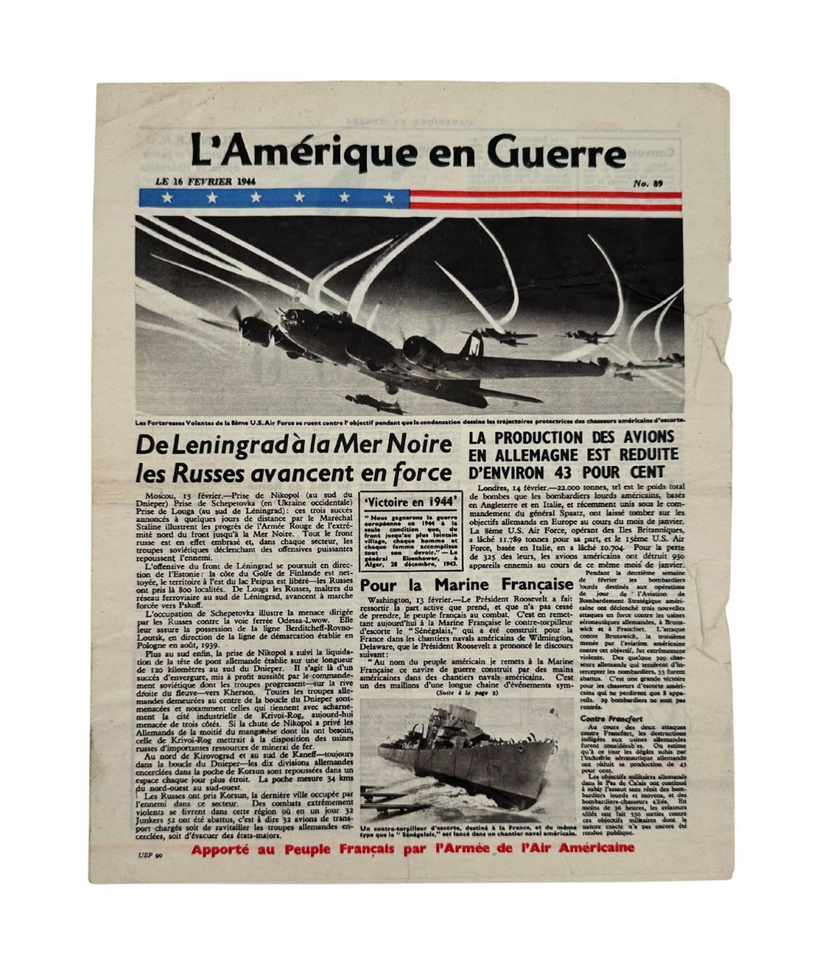 Superbe exemplaire original du journal allié "L’Amérique en Guerre", numéro 89, daté du 16 février 1944, distribué par l’Armée de l’Air Américaine au peuple français pendant l’occupation.