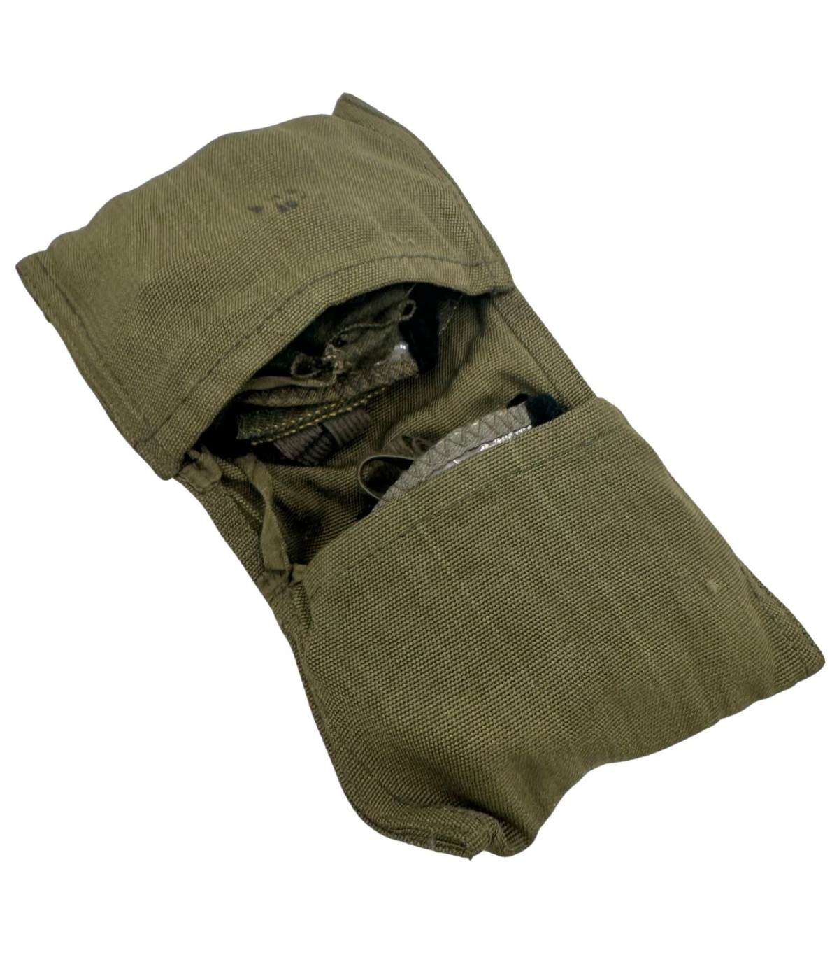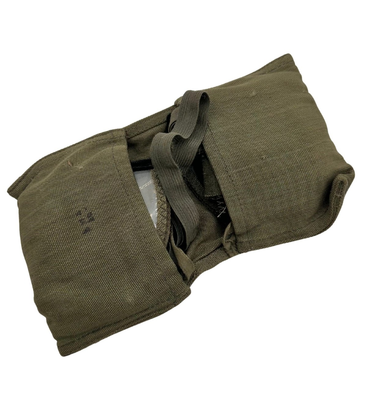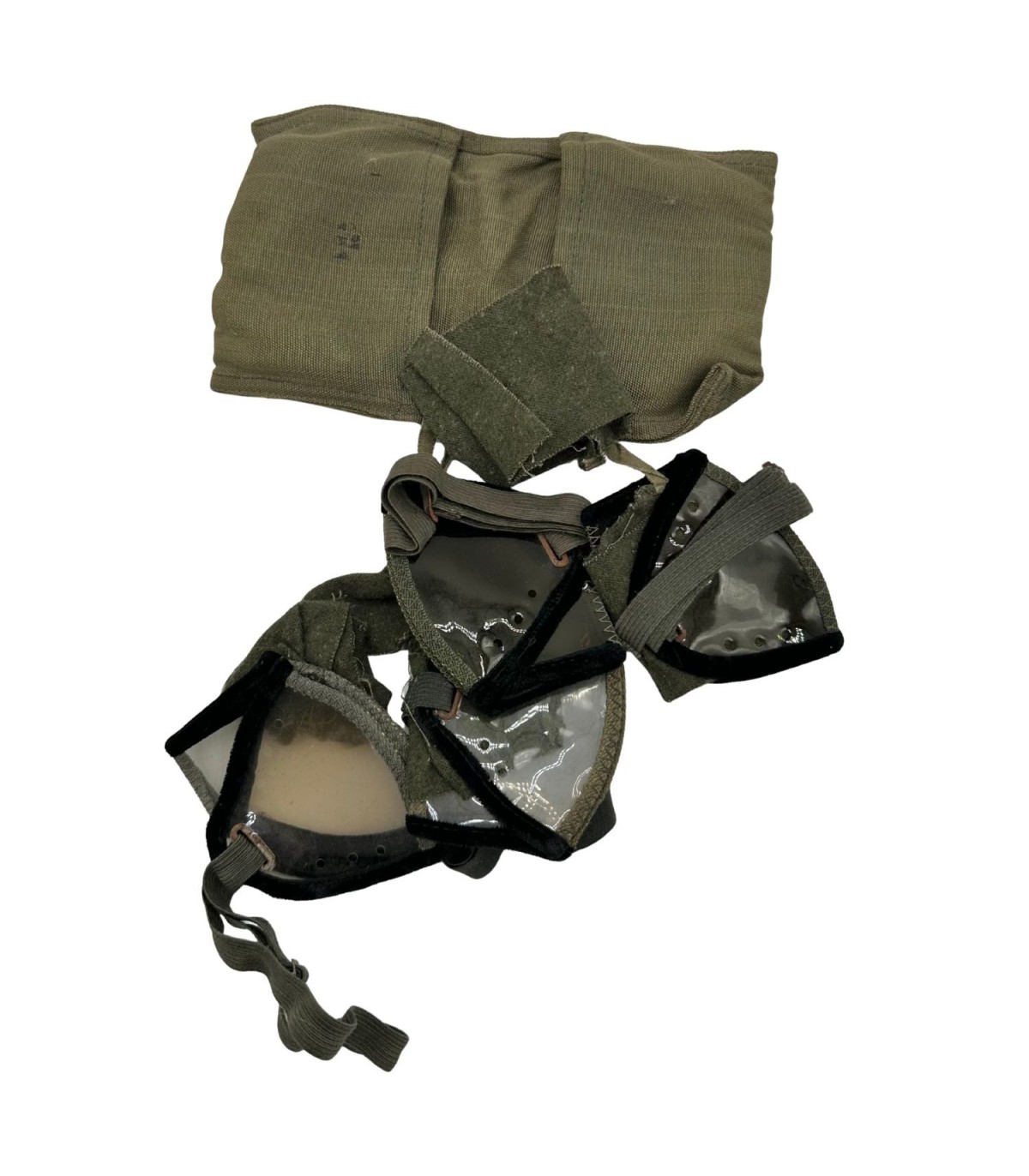 Fabriquée en toile robuste, compartimentée et accompagnée de son chiffon de nettoyage d’origine, cette pochette est marquée GNG, attestant de son authenticité. Les lunettes incluent des verres transparents et teintés avec sangles élastiques, garantissant un équipement complet pour petite unité ou section.