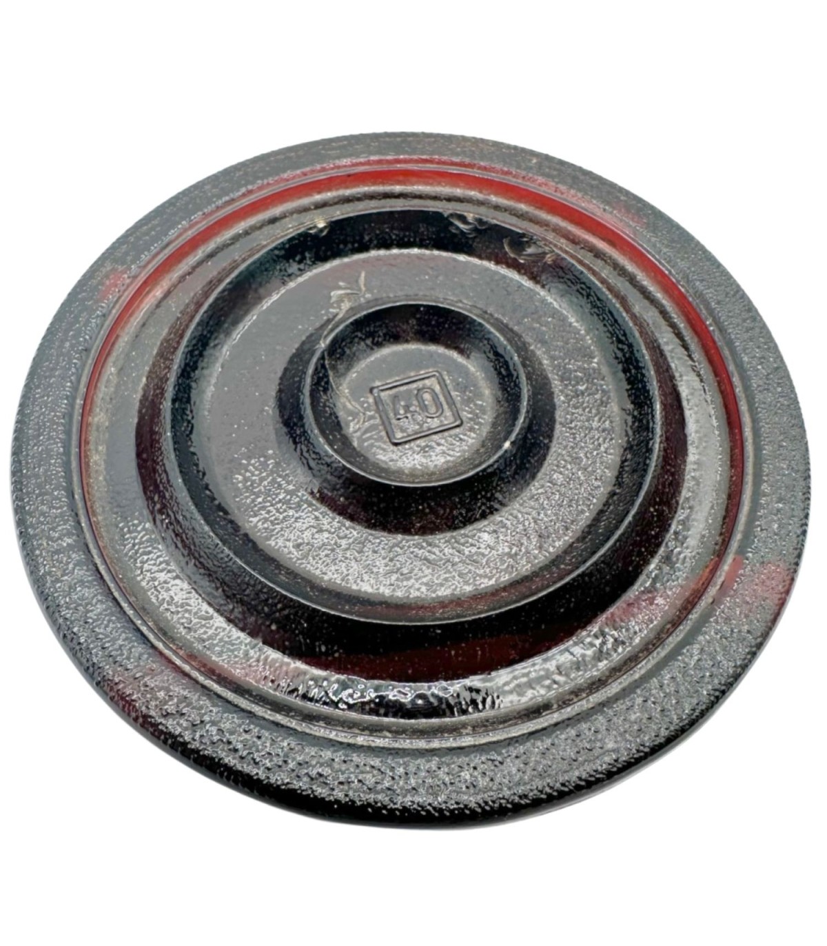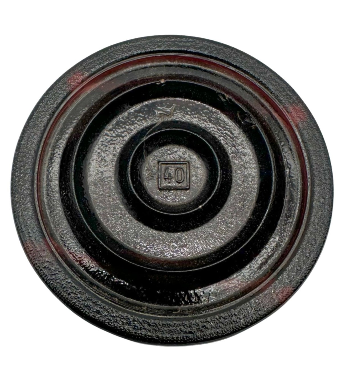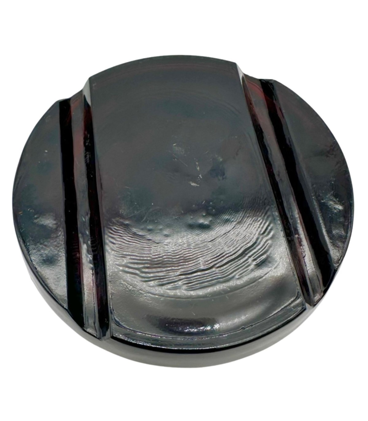Couvercle de mine "GLASMINE" en verre brun marquée "40". Le métal coutant de plus en cher et l’essentiel des mines pouvant être décelées par les détecteurs des équipes de déminage, les Allemands veulent faire d’une pierre deux coups en développant pendant la Seconde Guerre mondiale une mine dont la structure est en verre.