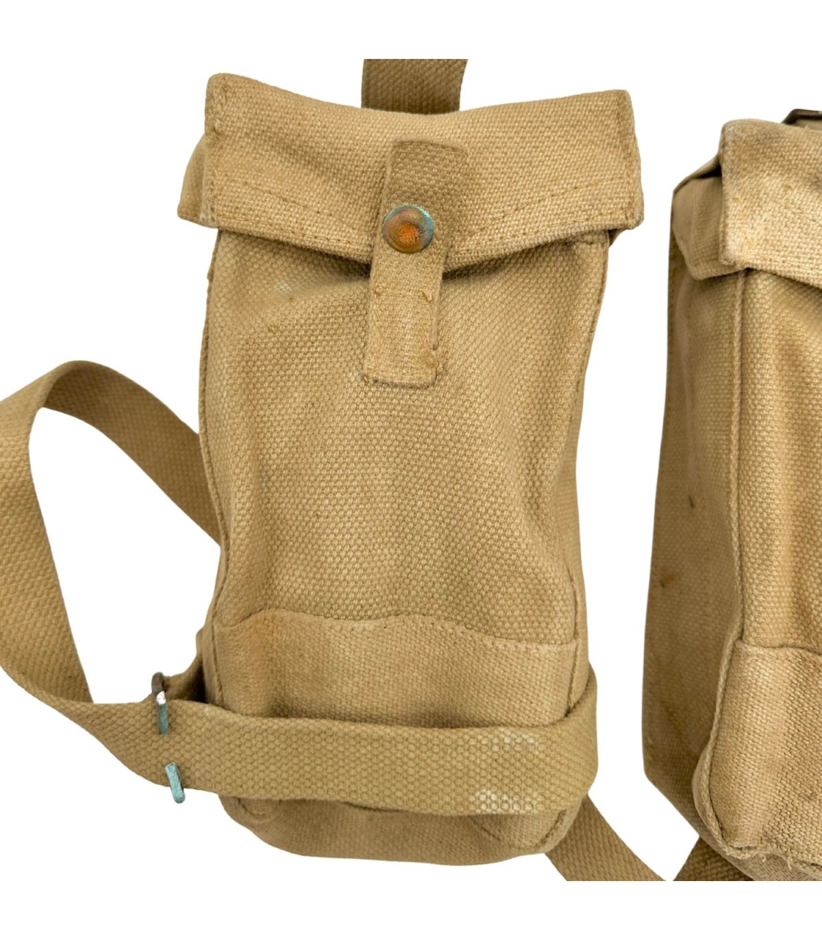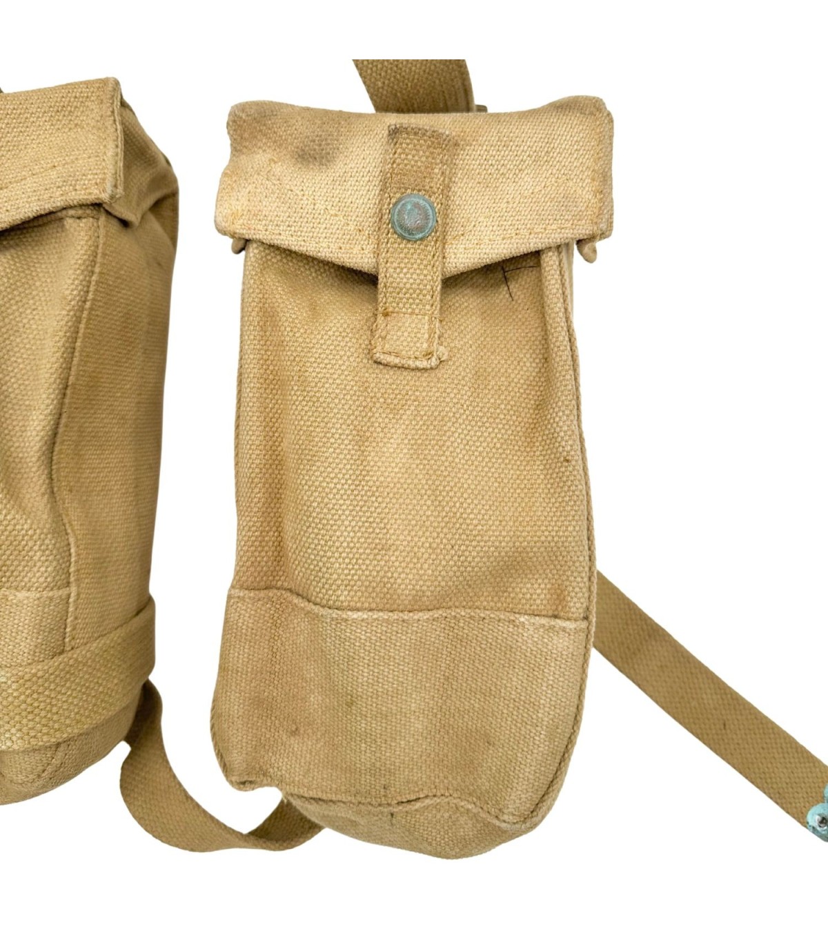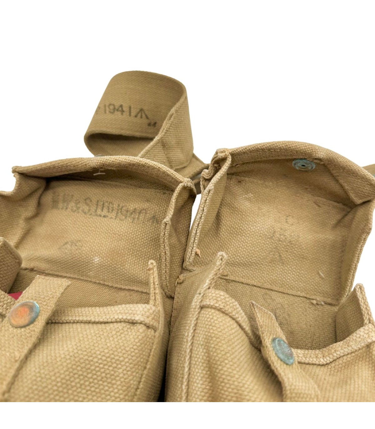 Ensemble de pouch supplémentaire pattern 37 d'origine deuxième guerre de fabrication britannique. Ces pouchs sont complets avec leur deux sangles de transports et maintien. L'ensemble fabriqué en WEB est en excellent état. Ils sont daté respectivement de 1939 et 1940.