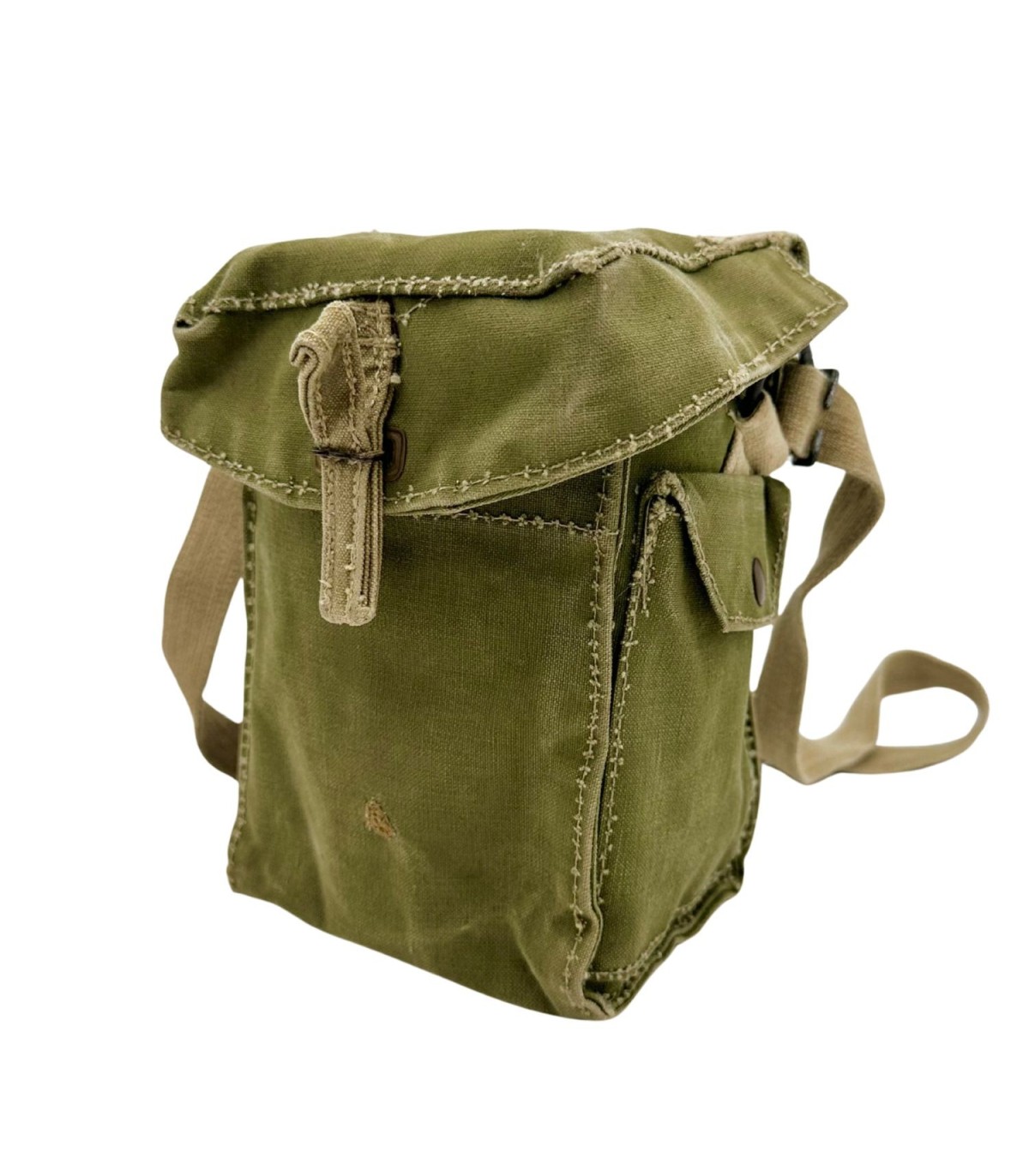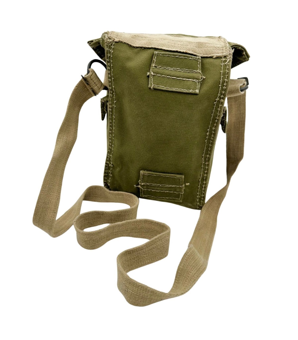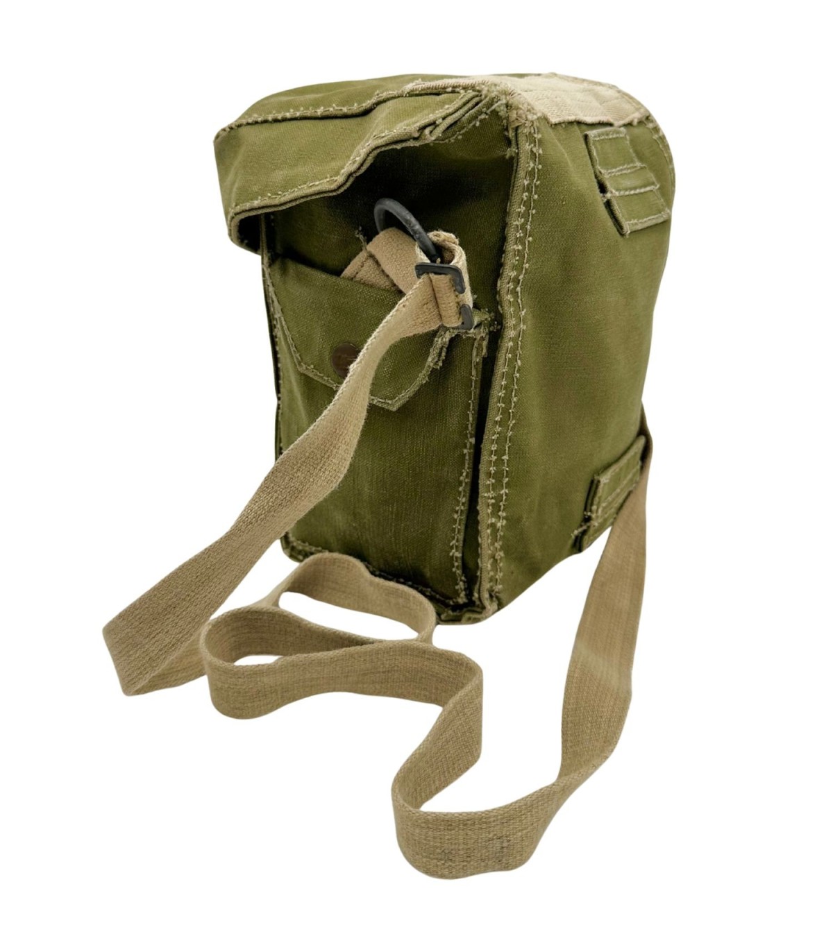 Housse de masque à gaz avec sa sangle de transport de l’armée anglaise. Issu entre mars 1943 et Juin 1944 pour les troupes d’assaut ayant participé au D-Day.