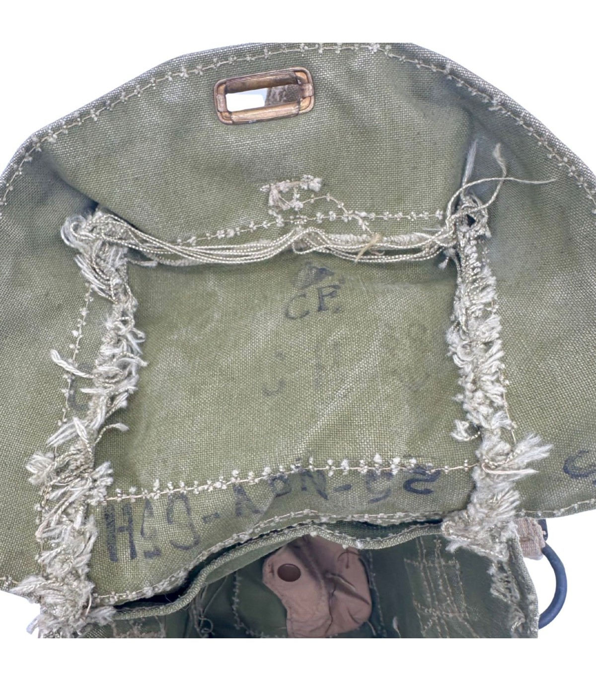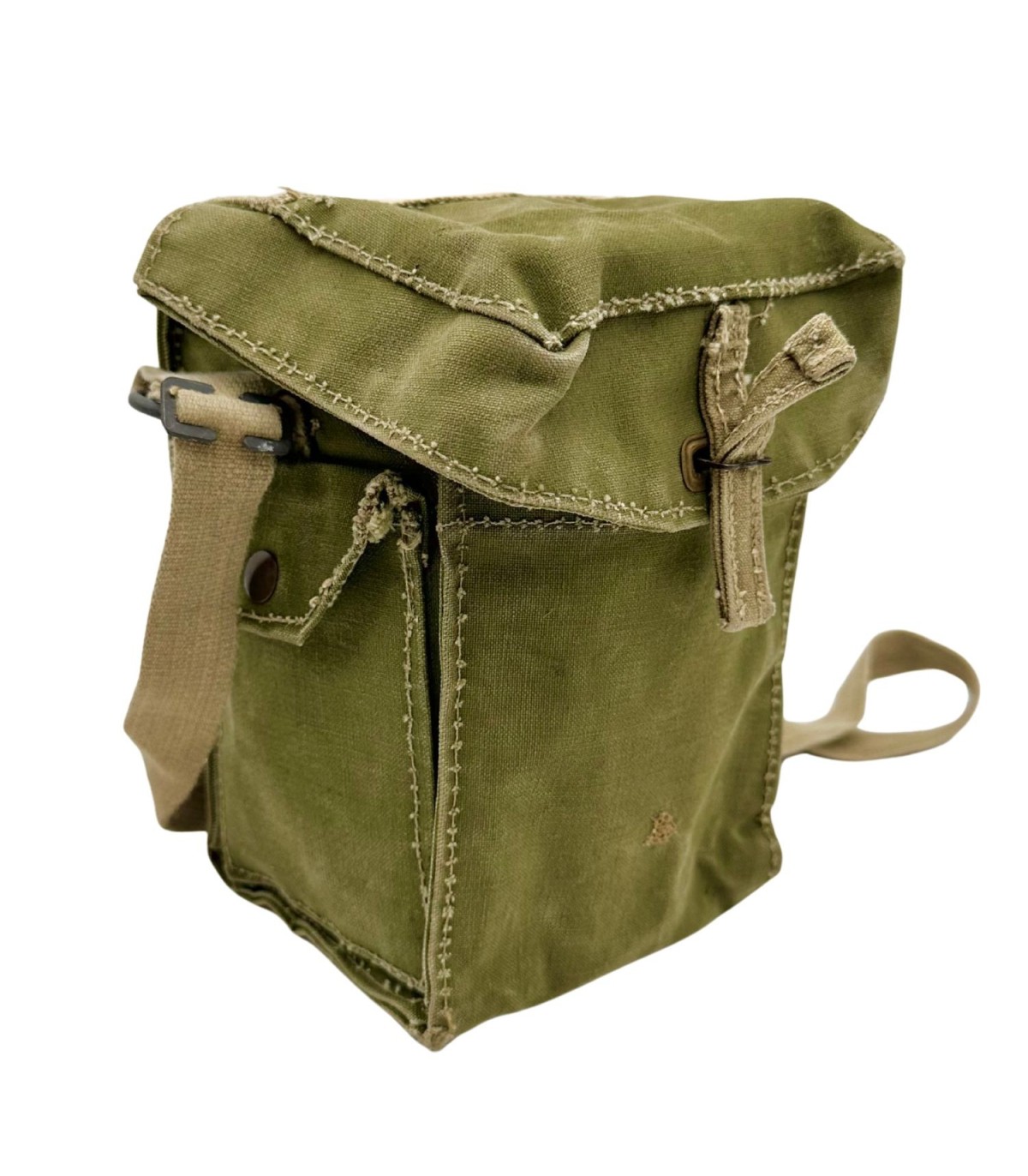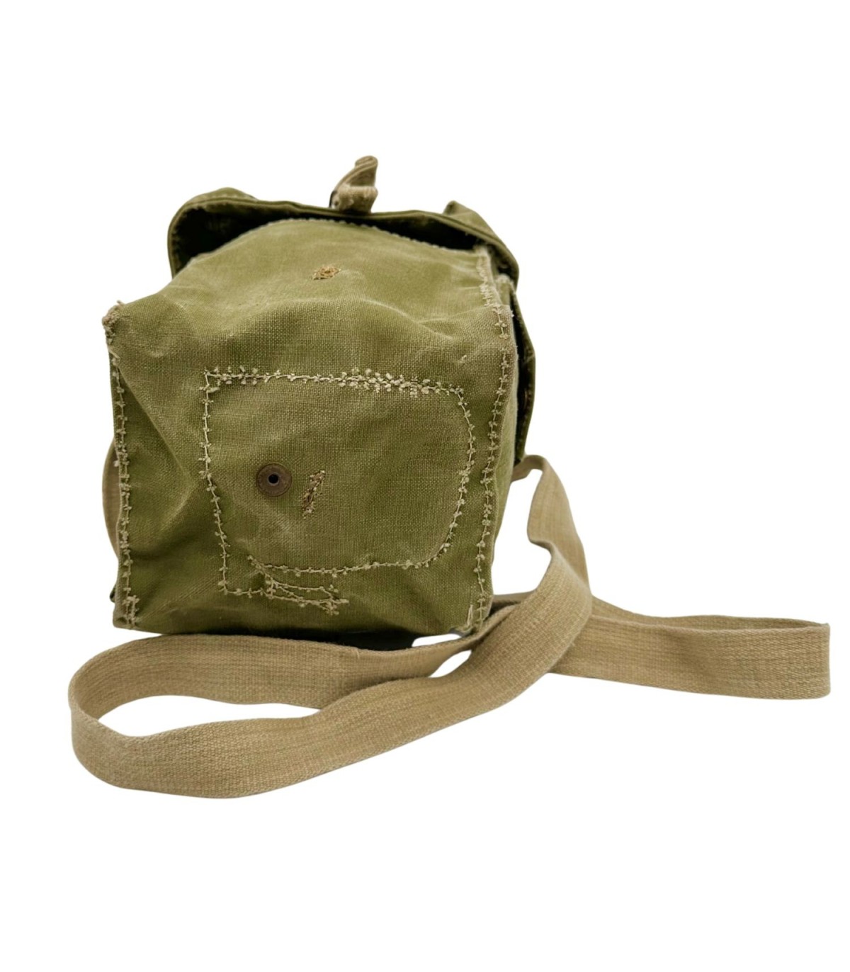 Housse de masque à gaz avec sa sangle de transport de l’armée anglaise. Issu entre mars 1943 et Juin 1944 pour les troupes d’assaut ayant participé au D-Day.