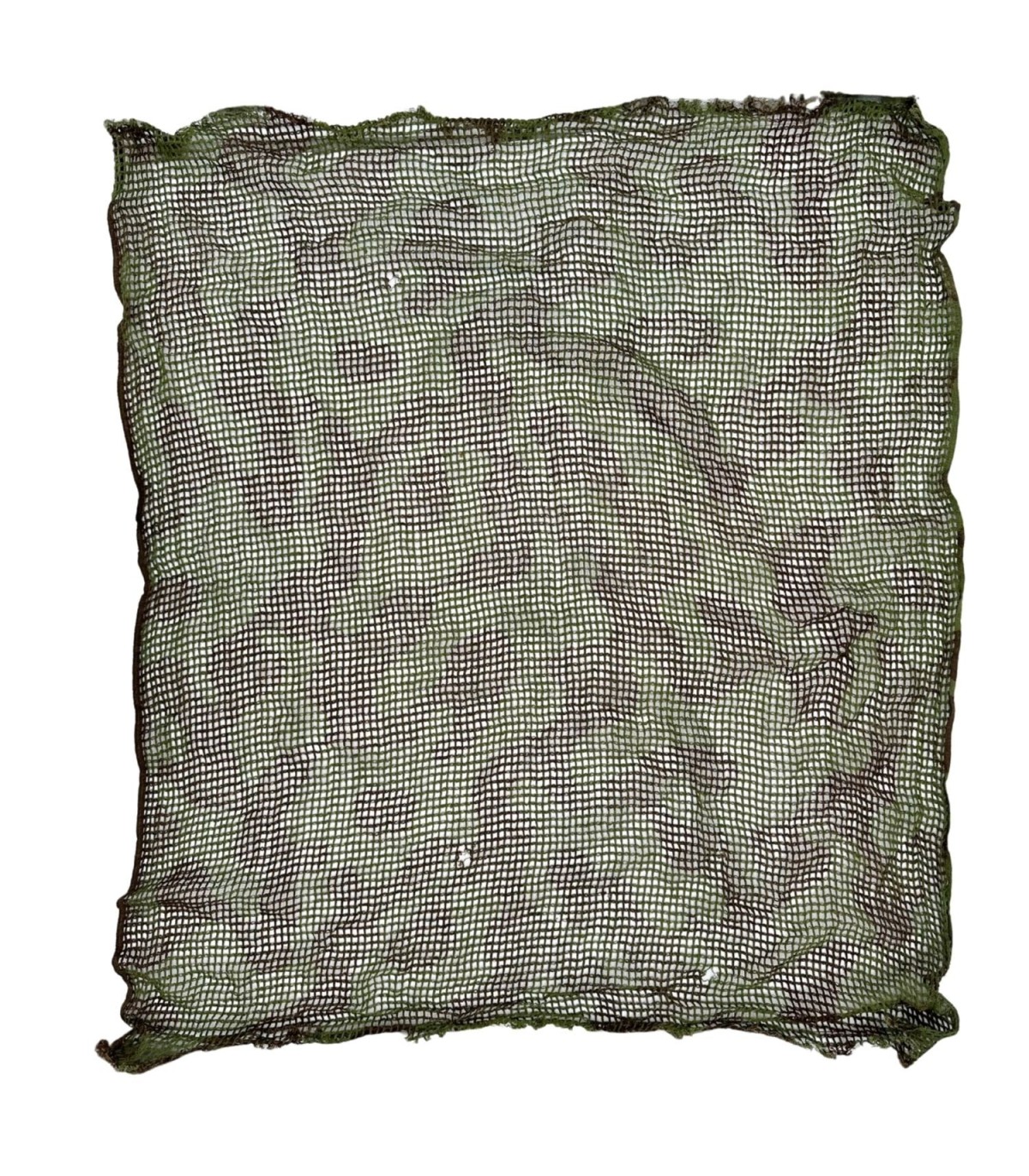 Cet exemplaire est en très bon état de conservation. Contrairement à beaucoup de filets retrouvés aujourd'hui qui sont déchirés ou dont les mailles sont distendues, celui-ci conserve une excellente tenue structurelle. La couleur de la teinture (généralement un mélange de brun et de vert olive) est restée bien présente, offrant cette patine "terrain" tant recherchée par les collectionneurs. La maille de coton est souple et prête à être installée sur un mannequin de combat ou exposée en vitrine.