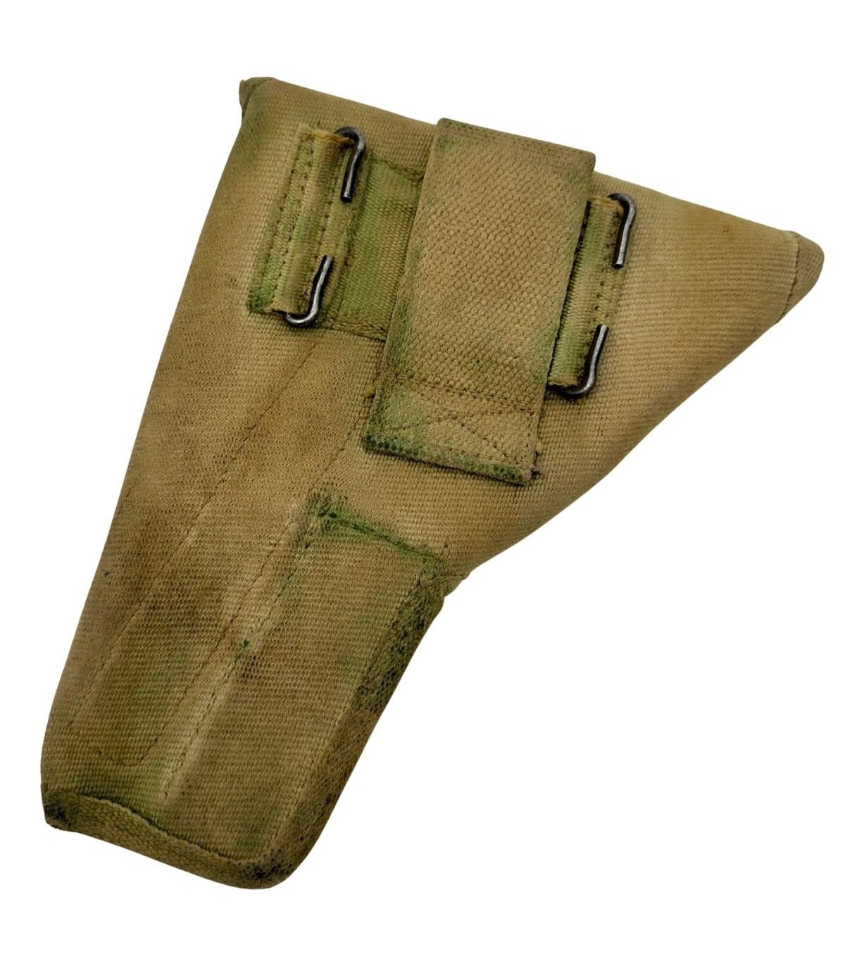 Holster réglementaire pour pistolet Browning Hi-Power GP-35 (Inglis), fabrication canadienne FEJC, daté 1945. Production de fin de guerre, typique des équipements du Commonwealth lors de la Libération de l’Europe du Nord-Ouest.