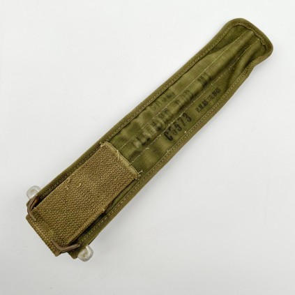 Fabriqué en toile épaisse de type OD7 (Olive Drab n°7), cet étui est renforcé, cousu solidement et doté d’un passant en toile robuste à l’arrière pour une fixation facile à l’équipement standard du soldat américain. Il permettait de ranger de manière sécurisée les tiges de nettoyage segmentées utilisées pour l’entretien du fusil emblématique M1 Garand.