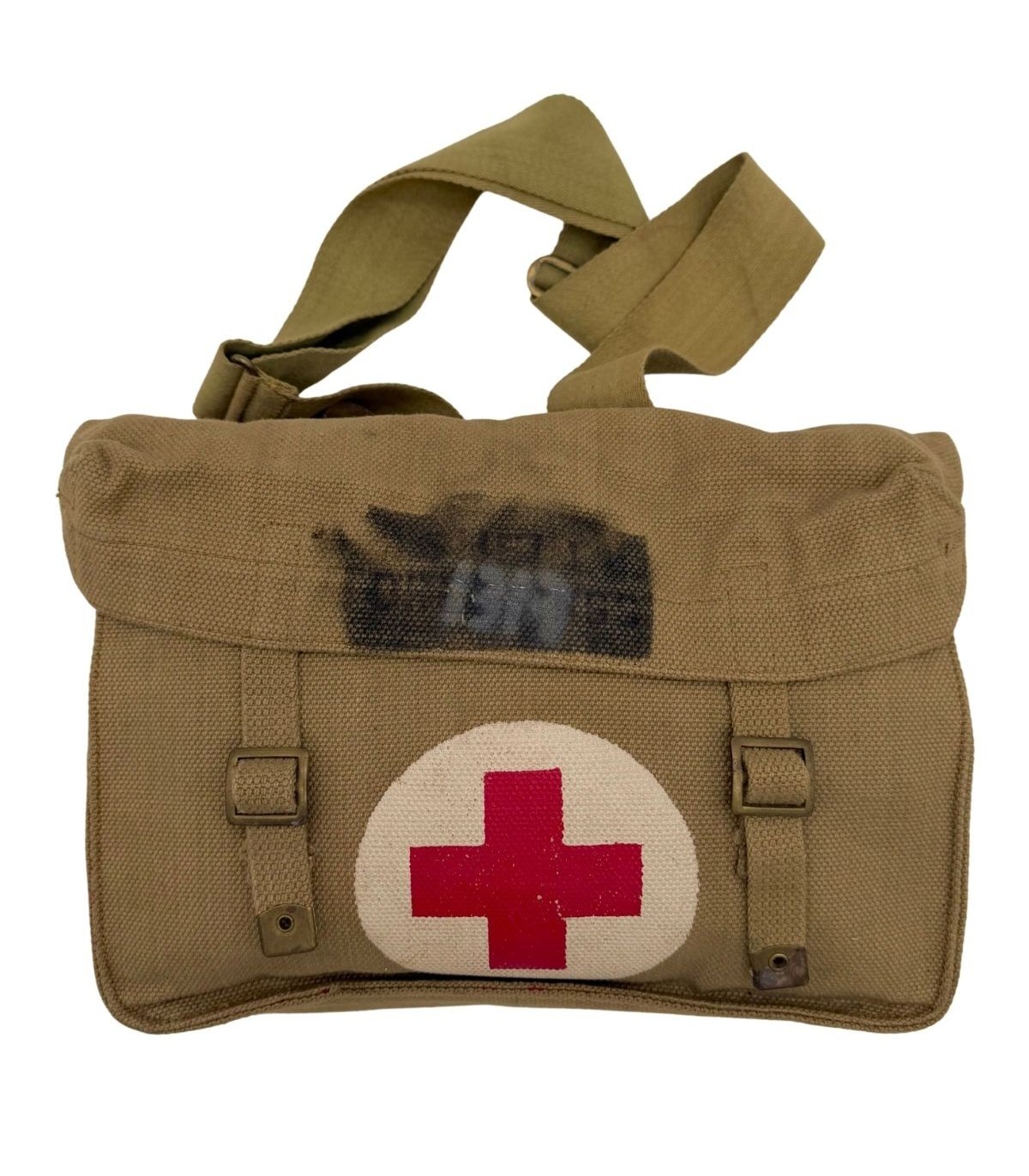 Symbolique Médicale : L'avant de la musette arbore fièrement une Croix Rouge peinte (généralement sur un disque blanc), permettant une identification immédiate du personnel non-combattant sur le champ de bataille.