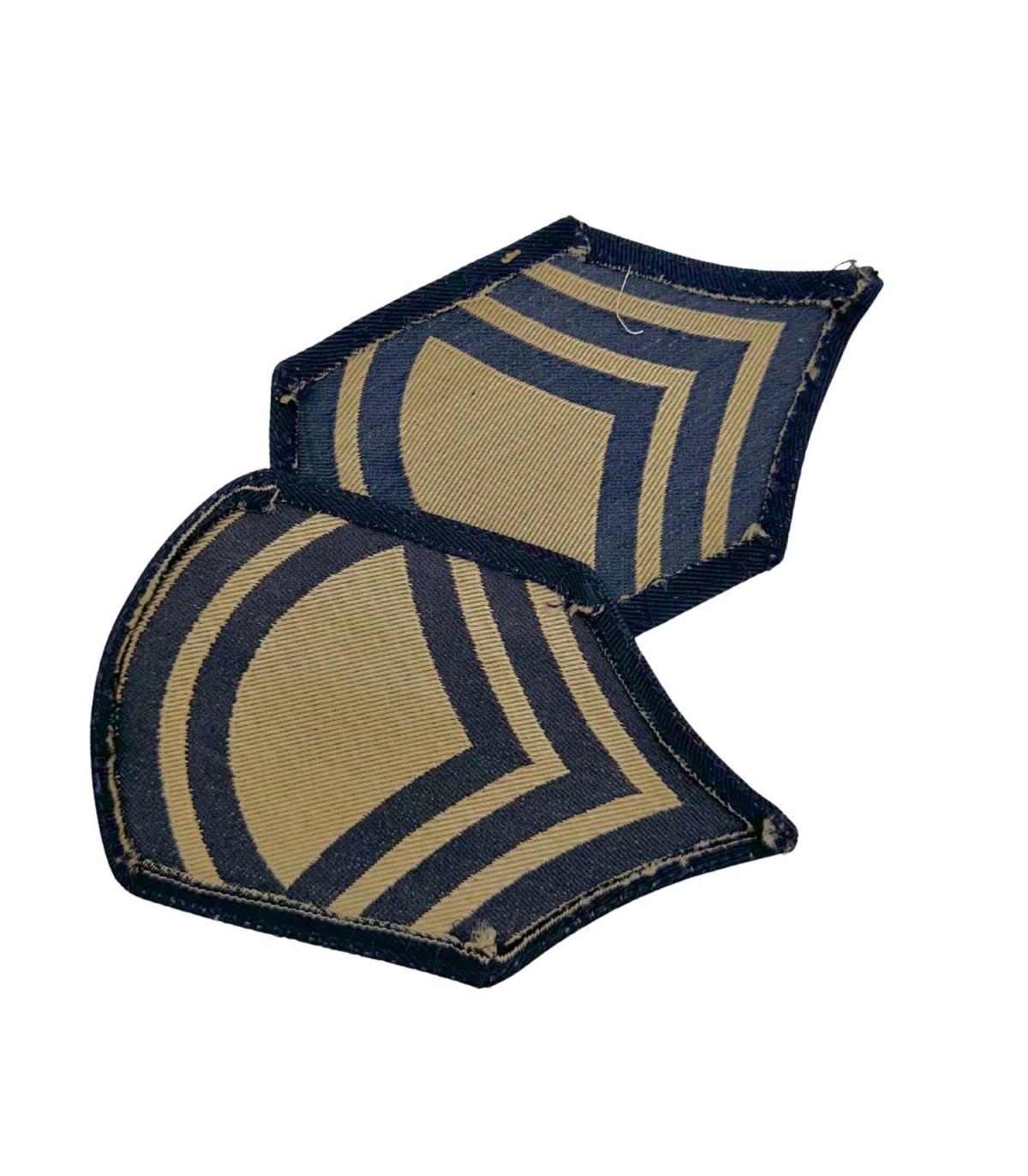 Paire de grade de technical sergent de fabrication WW2 sur fond coton bleu marine.