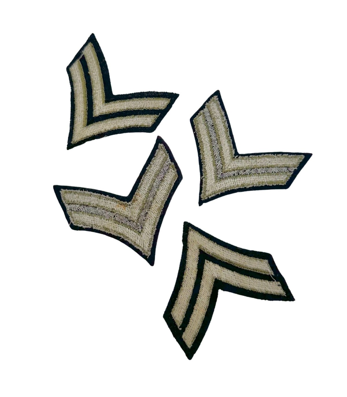 Ces insignes étaient cousus directement sur les manches des uniformes de combat et servaient à identifier rapidement le rôle et la responsabilité du soldat sur le champ de bataille. Chaque grade portait une signification forte : celui du caporal marquait le passage d’un simple exécutant à un sous-officier en devenir.