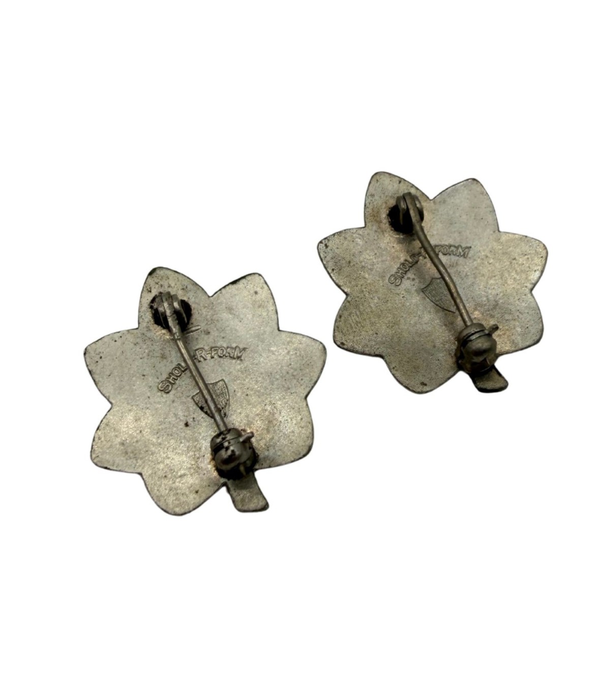 Ne manquez pas cette paire d'insignes haut de gamme. Les marquages "SHOLD-R-FORM" sont des variantes techniques appréciées des spécialistes. Ajoutez cette pièce d'exception à votre collection dès aujourd'hui !