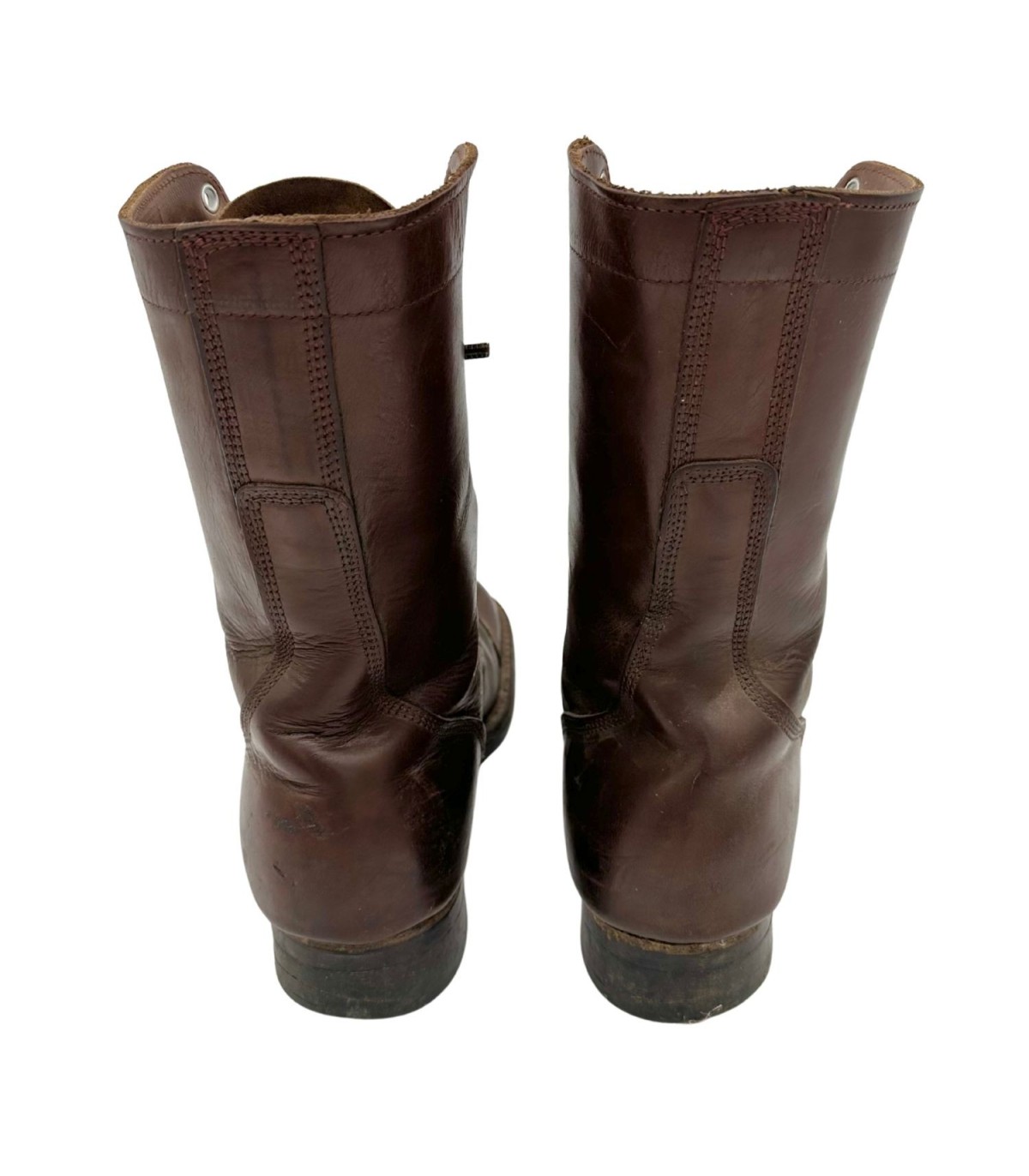 Ces bottes furent principalement utilisées par les parachutistes et unités aéroportées américaines durant la période de transition de la fin des années 1940 jusqu’au début de la guerre de Corée. Leur design intemporel et leur fabrication robuste en font aujourd’hui une pièce de collection recherchée, aussi bien par les passionnés d’histoire militaire que par les amateurs de vintage authentique.