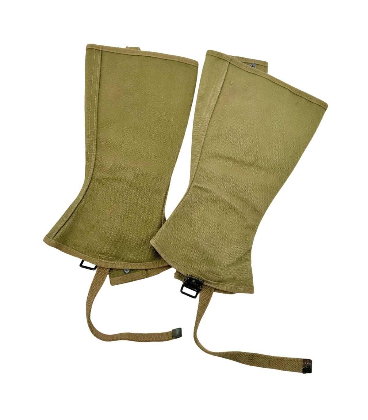 Découvrez cette paire de guêtres US 2R, d'origine deuxième guerre. Fabriquées en 1942, ces guêtres en toile modèle M1938 étaient essentielles pour les soldats américains, offrant protection et soutien lors des opérations sur le terrain.