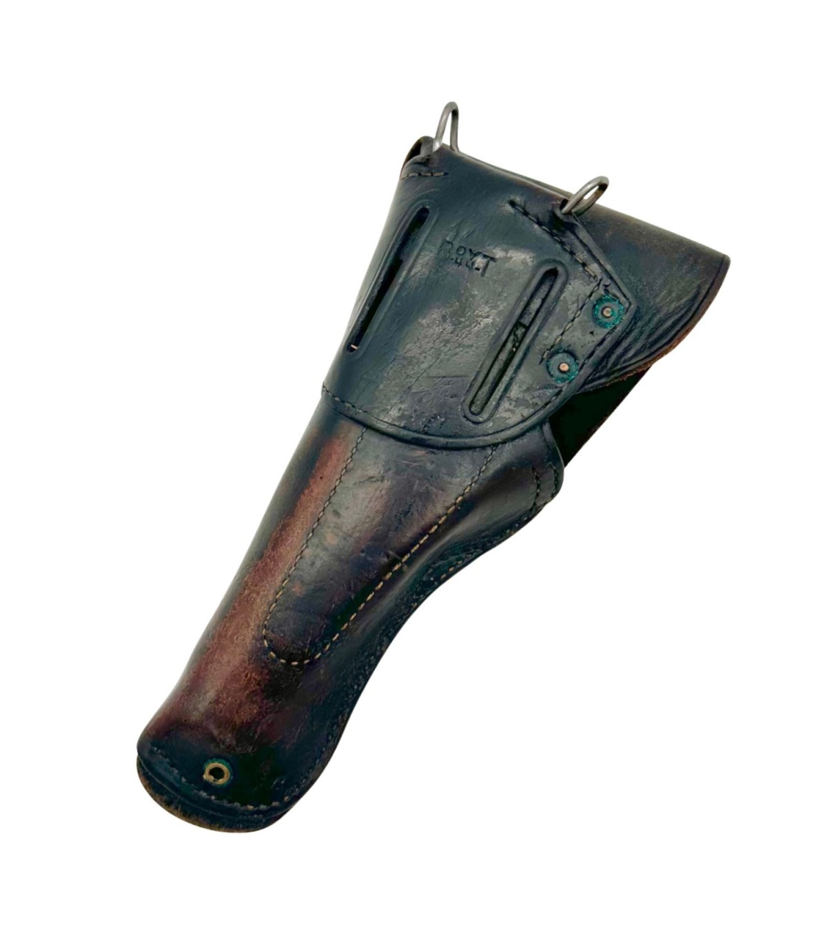 Cet étui réglementaire fut conçu en cuir épais de haute qualité, spécialement produit pour l’armée américaine durant la Seconde Guerre mondiale. Marqué du fabricant "BOYT -44", il témoigne de son année de fabrication et de sa conformité au cahier des charges de l’US Army.