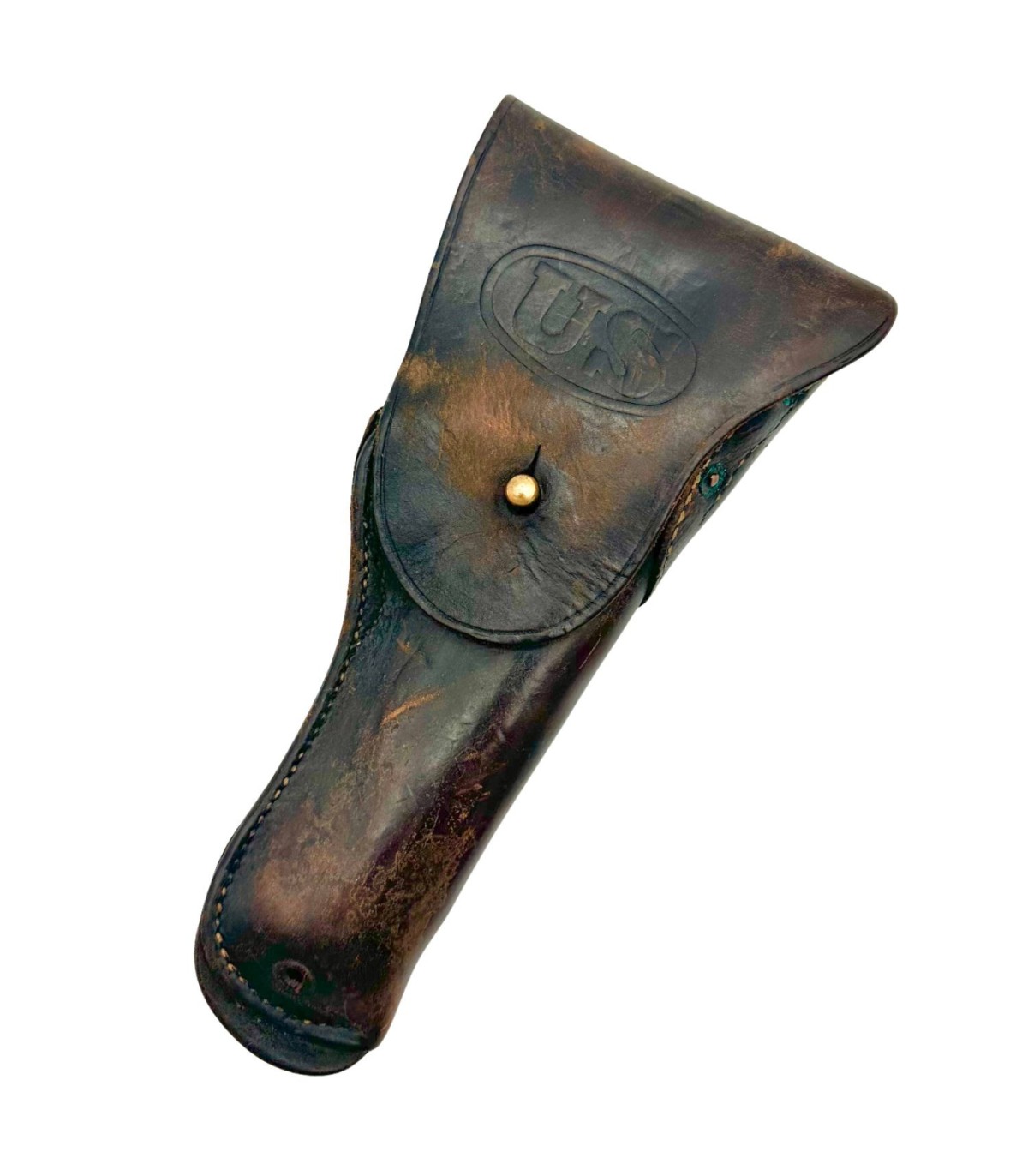 Le Colt 1911 était l’arme de poing réglementaire de l’armée américaine pendant la Seconde Guerre mondiale. Chaque soldat équipé recevait son holster en cuir, généralement fixé à la ceinture ou porté sur la cuisse.