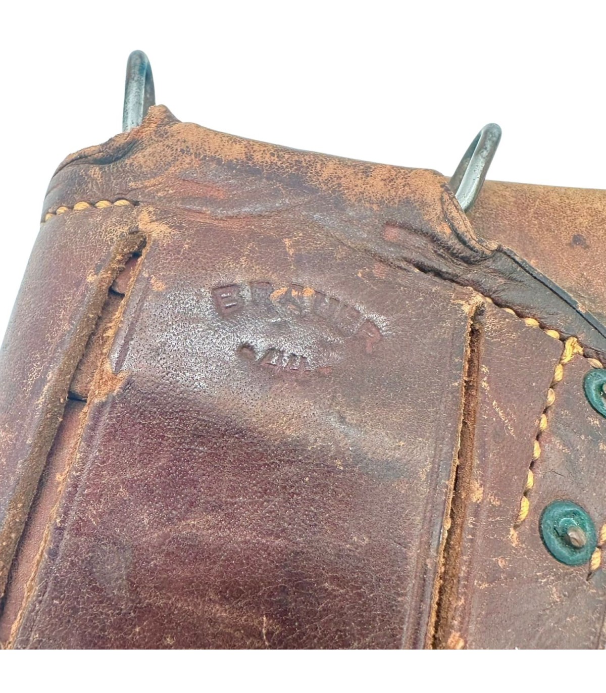 Le holster BRAUER 1944 est un excellent témoin de l'équipement de milieu de guerre, parfait pour compléter la tenue d'un officier ou d'un soldat armé du célèbre calibre .45 ACP. L'état général est généralement bon pour ces holsters, car le cuir est conçu pour résister aux rigueurs du service.