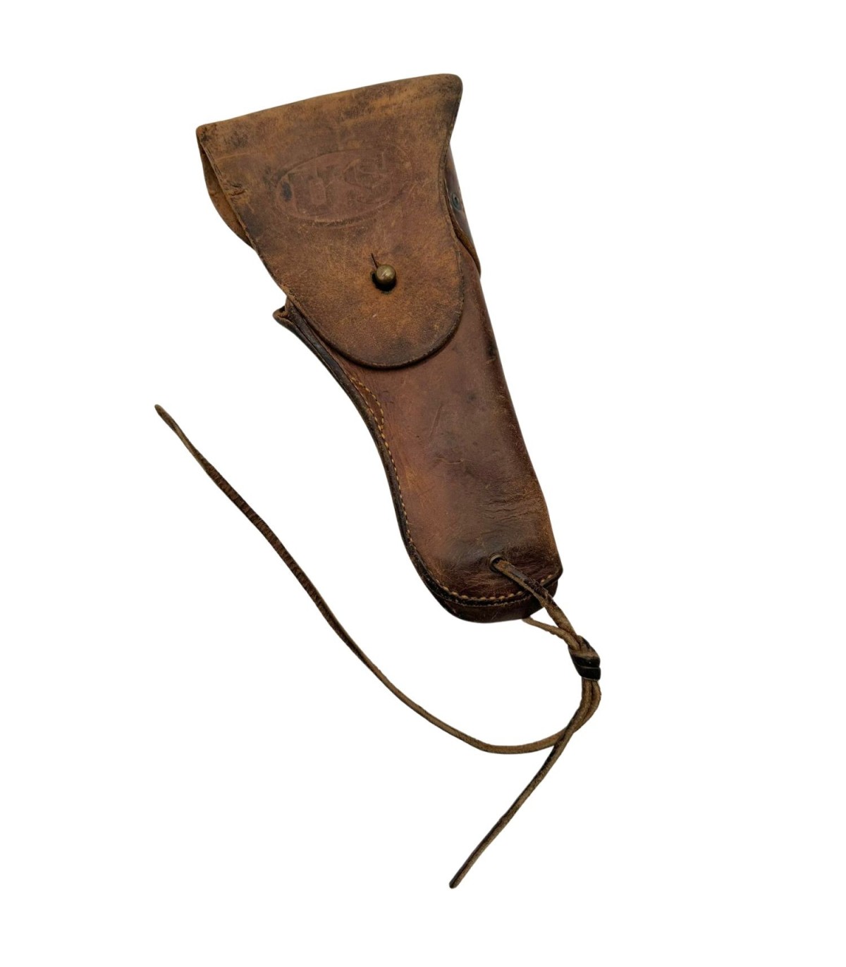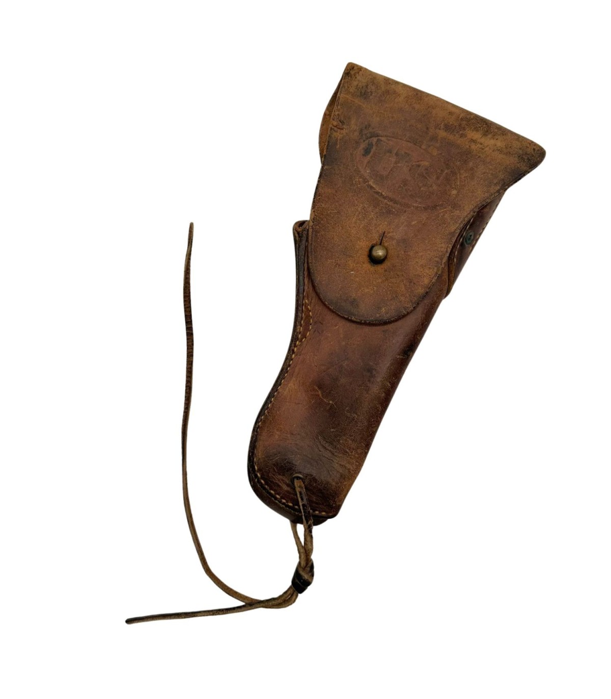 Holster emblématique de milieu de guerre, utilisé par officiers, sous-officiers, MP et équipages de véhicules. Parfait pour compléter une tenue ETO 1944 ou un équipement d’officier US Army WWII.